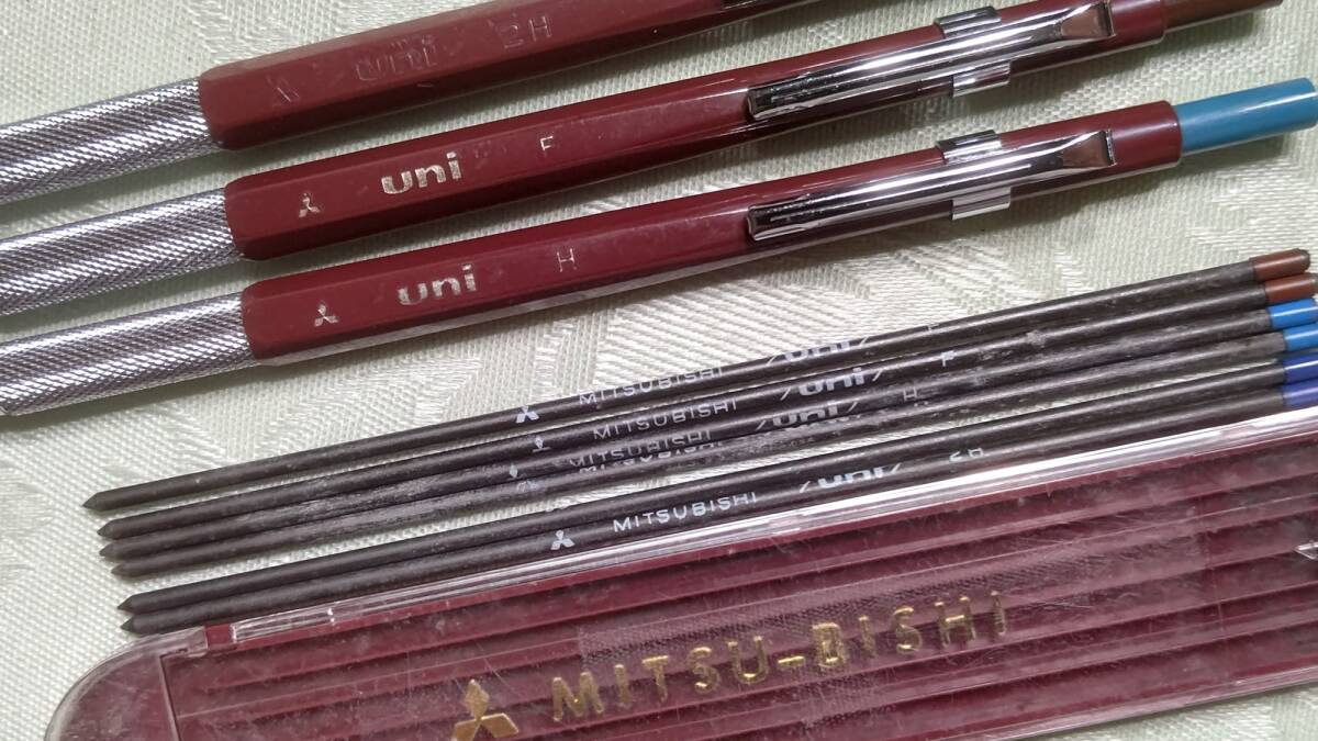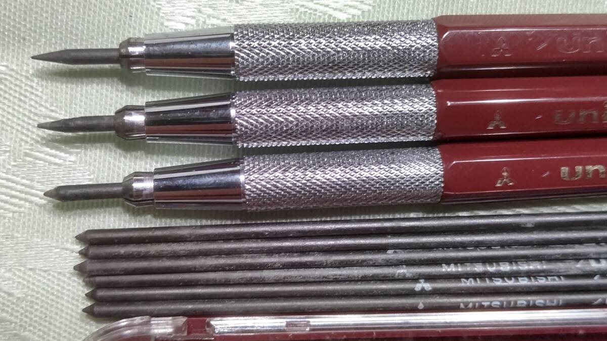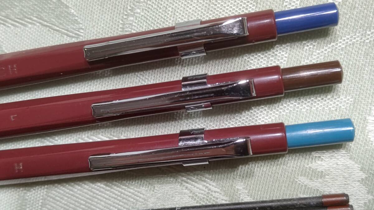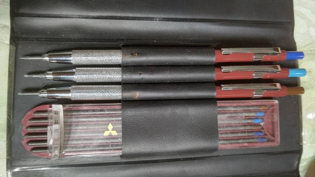 922-12 昭和レトロ 廃盤 三菱鉛筆 uni ユニ 芯ホルダー 2.0mm 色違い 3本セット ドロップ式 初期型 未使用替え芯ケース入り6本 ホルダーセットケース入り
