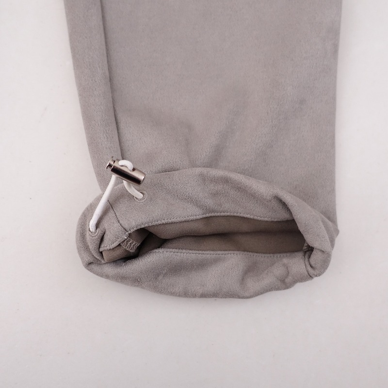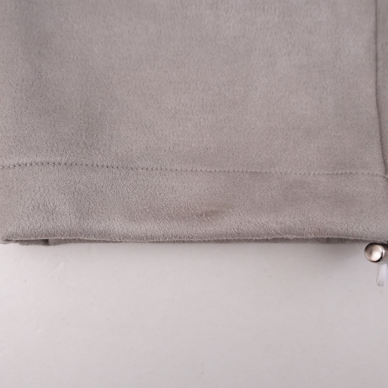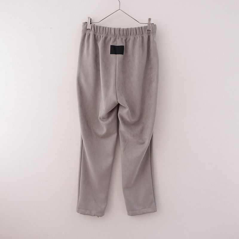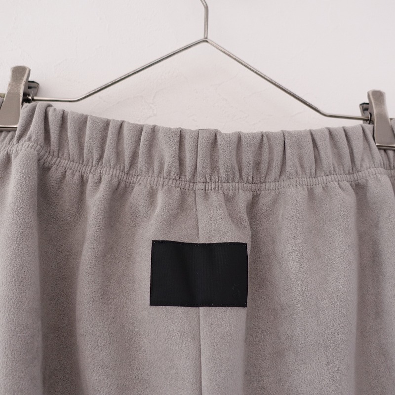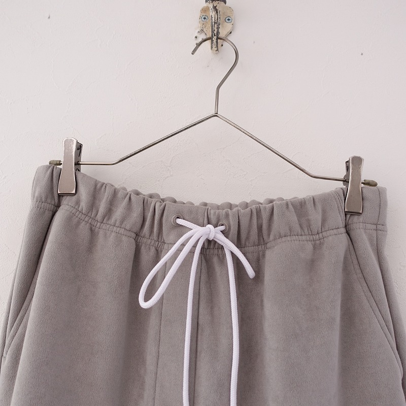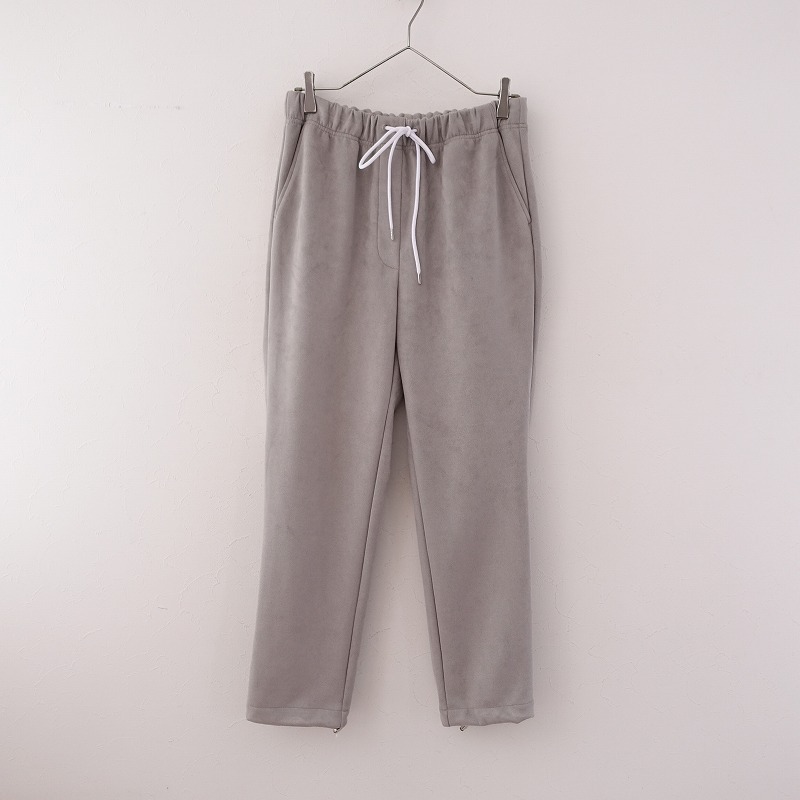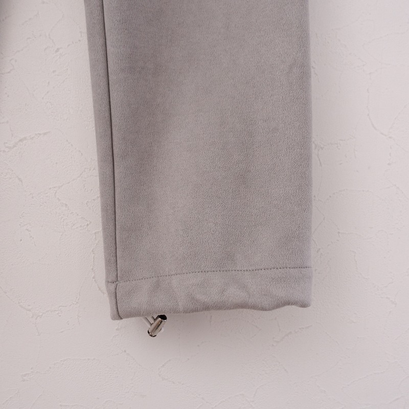 | COGTHEBIGSMOKEのADJUSTABLE HEM トラウザーズパンツです。カラーはグレーでもっちりとしたフェイクスエード地で仕立てられております。ウエストはゴム&ひも入り、フロント開口部はフェイクのデザインで、裾はドローコード入りになっております。両腰にポケット付き、バックウエストにブラックのタグがあしらわれております。定価(メーカー希望小売価格)30,800円 税込みの商品です。 |