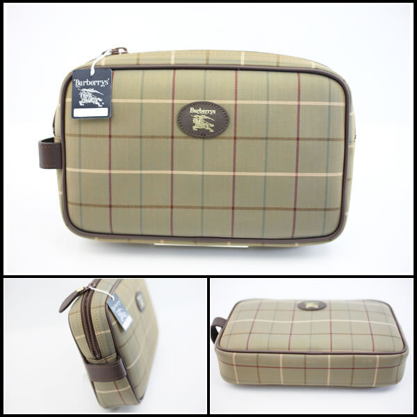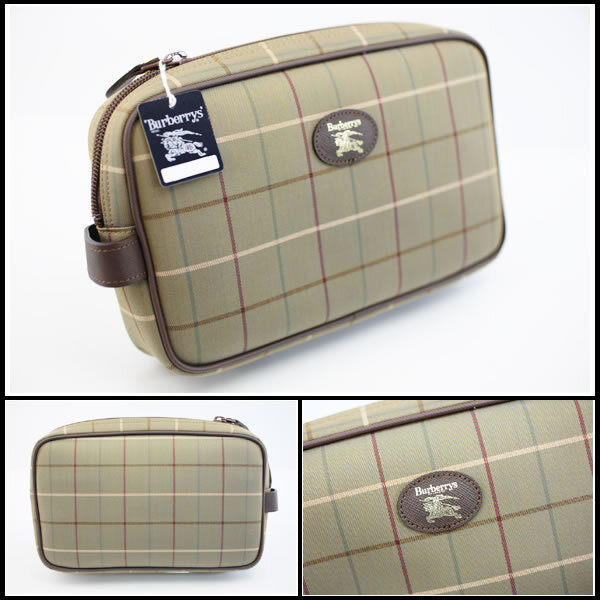 商品名 | バーバリー ★希少 未使用・保管品 セカンドバッグ カーキ系チェック キャンバス×レザー |