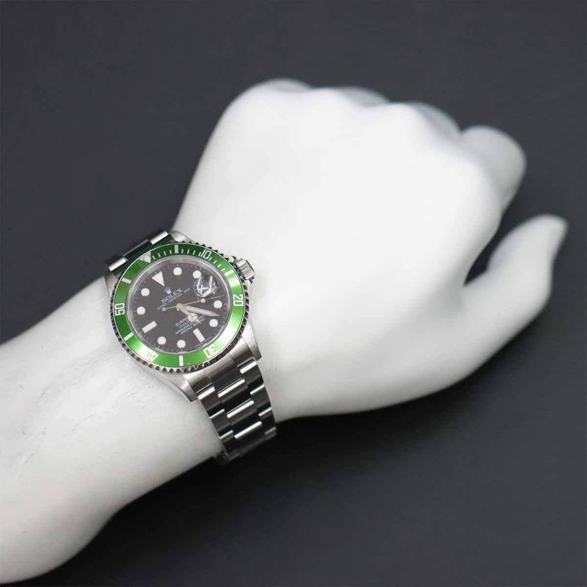 | 商品概要 | ロレックスから大人気ダイバーズウォッチの『サブマリーナ』です。2003年にサブマリーナ誕生50年を記念し、バーゼルワールドで発表されたモデルで、ベゼルの鮮やかな緑から「グリーンサブ」の俗称で呼ばれています。製造期間の短さからコレクター垂涎アイテムの一つとなっています♪ |