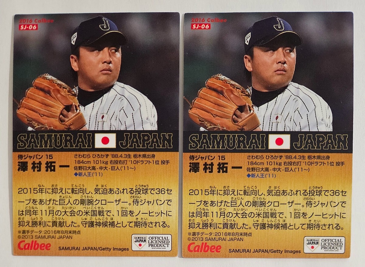 2016年カルビー侍ジャパン SJ-06 澤村拓一 ノーマル+金箔サイン入り