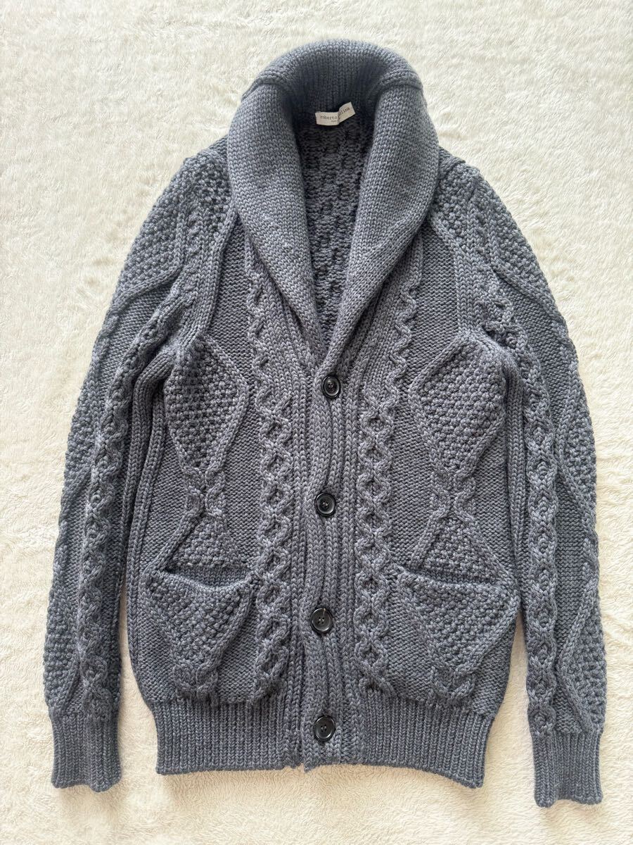 秋冬 roberto collina size46 イタリア製ウールニットカーディガン ロベルトコリーナ アラン編み グレー メンズ