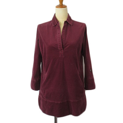 エディーバウアー EDDIE BAUER シャツ スキッパー コーデュロイ 細畝 PXS 紫 パープル レディース