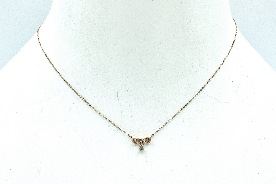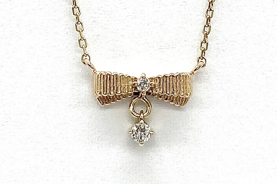 | 解説 | 若い女性に人気のニューヨーク発ファッションブランドから、可愛いジュエリーのご提案。華奢なグログランリボンに小さく揺れるダイヤがとってもキュート |