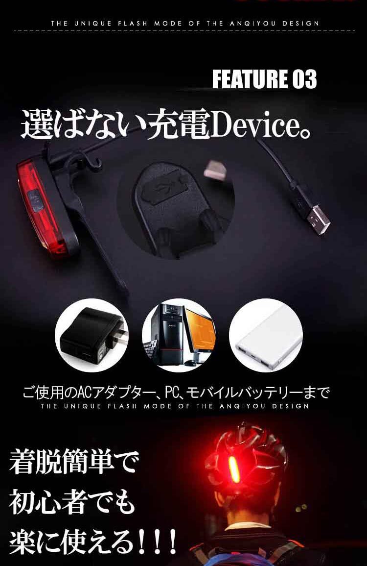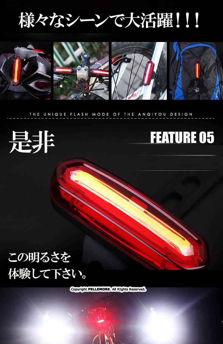 ・状況に合わせて選べる5種類の照光パターンをもった自転車用LEDリアライト。