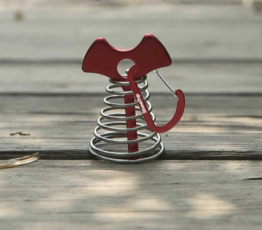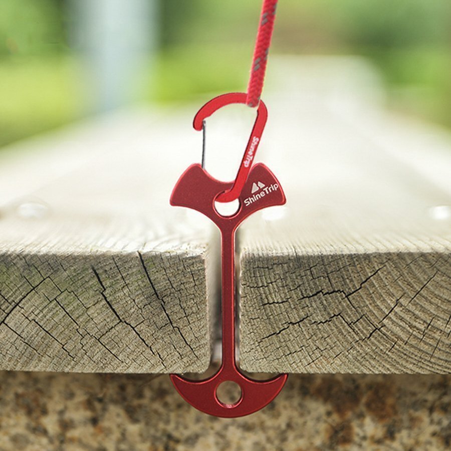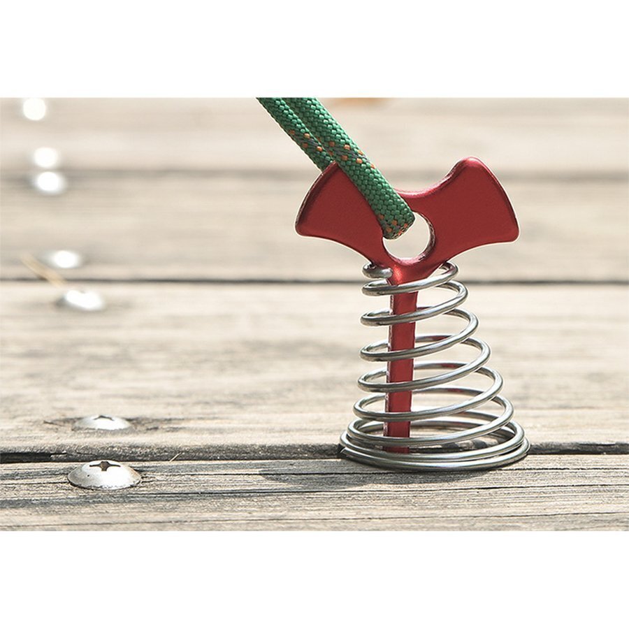 「多機能」 ウッドデッキサイトにもペグが打てます。 ペグ打ちのできないデッキサイトでのテント設営、デッキの下まで張り縄を回すには圧倒的ロープ不足、石だけの固定では 風で吹っ飛ばないか不安がなくなります。