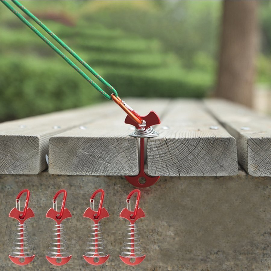 LRM2831★テントデッキ ウッドデッキ ペグ カラビナ付き ペグ ウッドデッキ キャンプ場 使いやすい 取り外しも簡単 4個セット