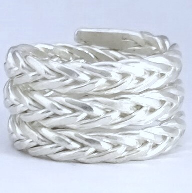 ◆カレンシルバー リング 高純度 3連◆約17号◆編み込み・三つ編み◆カレン族・karen silver 指輪【24tr17a】 |