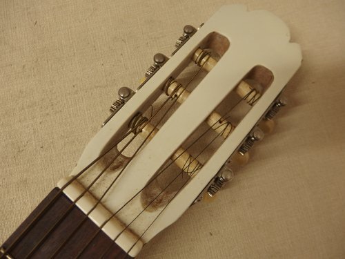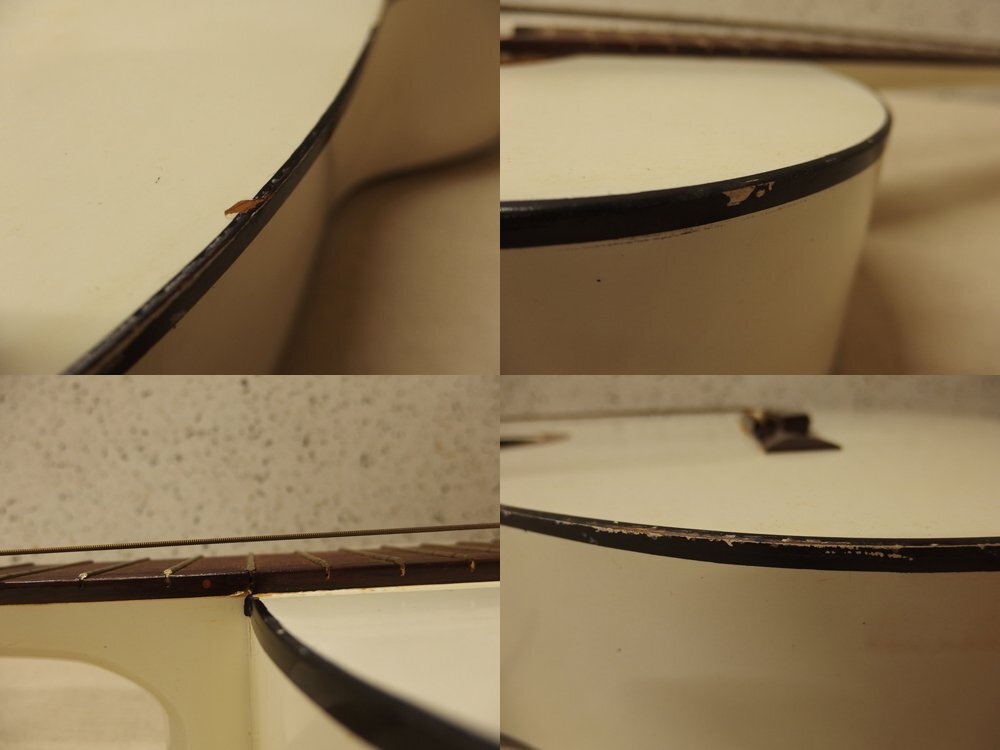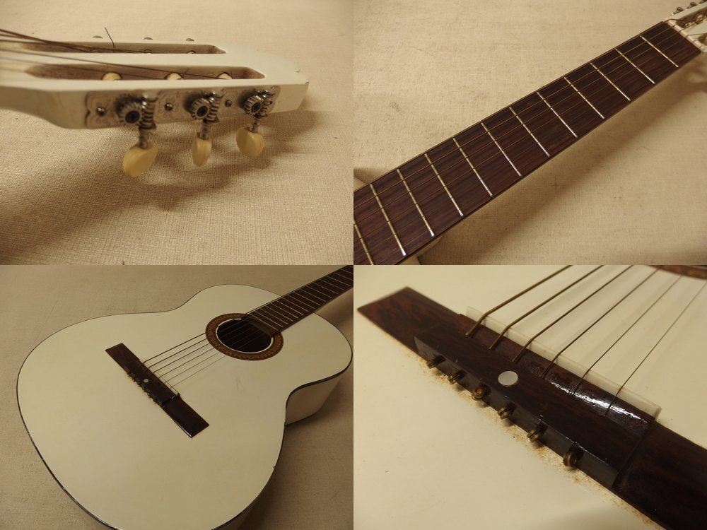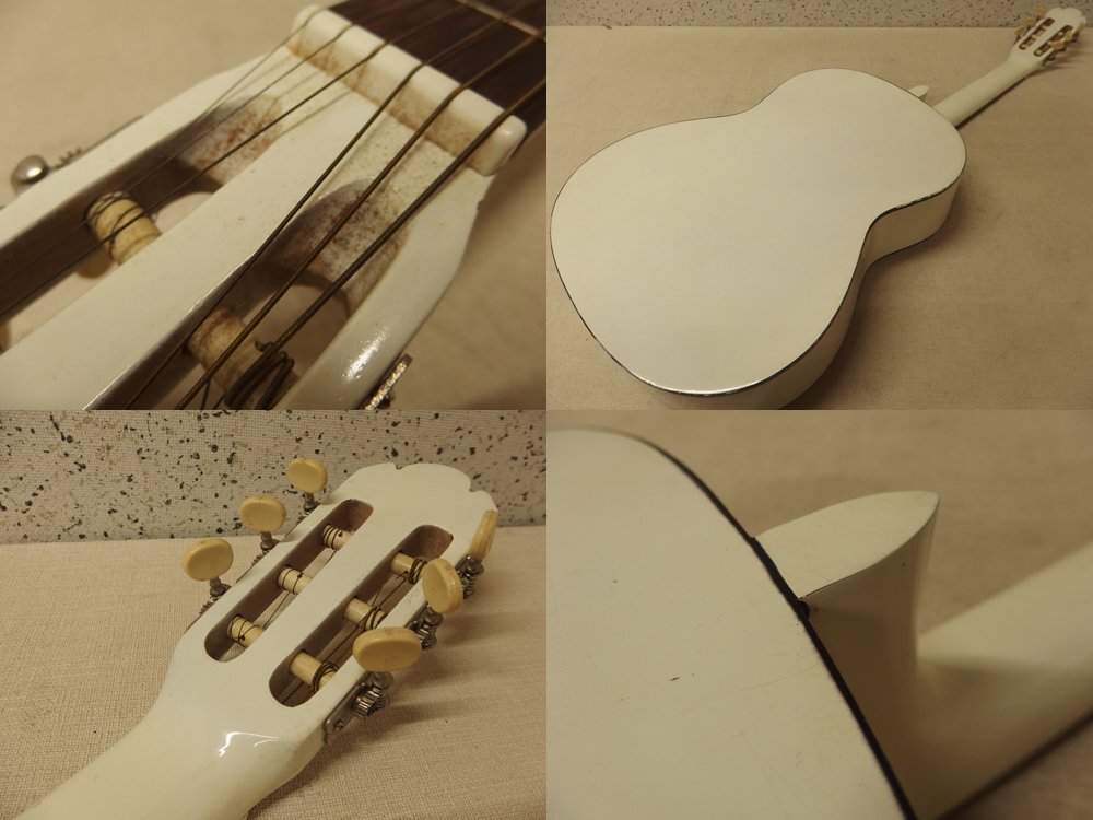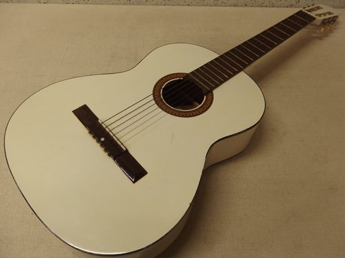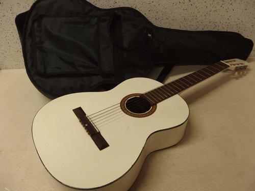 アリアのクラシックギター 白。ソフトケース付き。中古品。サイズ:全長102cm程度12F弦高4~6mm程