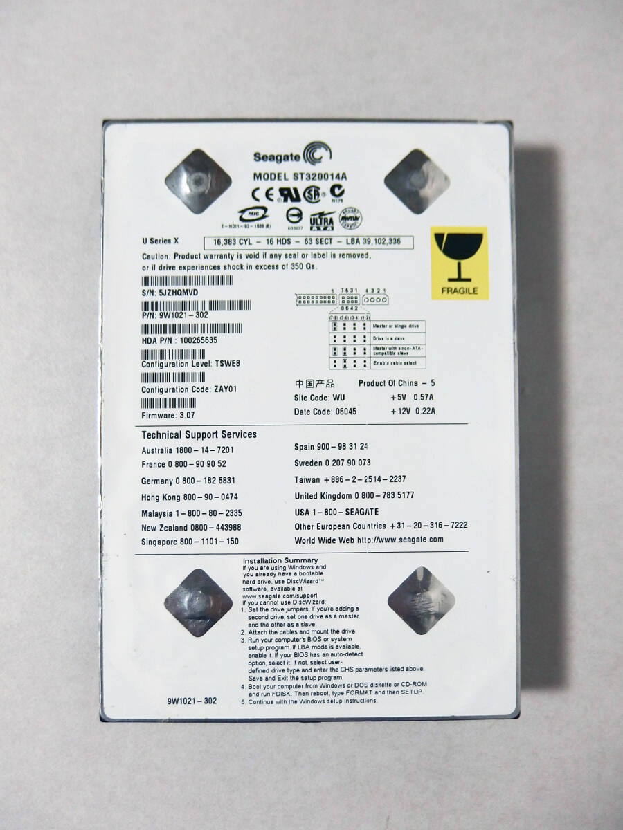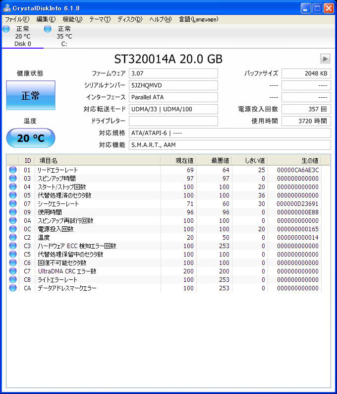 【中古】ST320014A U Series X 20.0GB CrystalDiskInfo 正常 3720時間 動作確認済 管理04