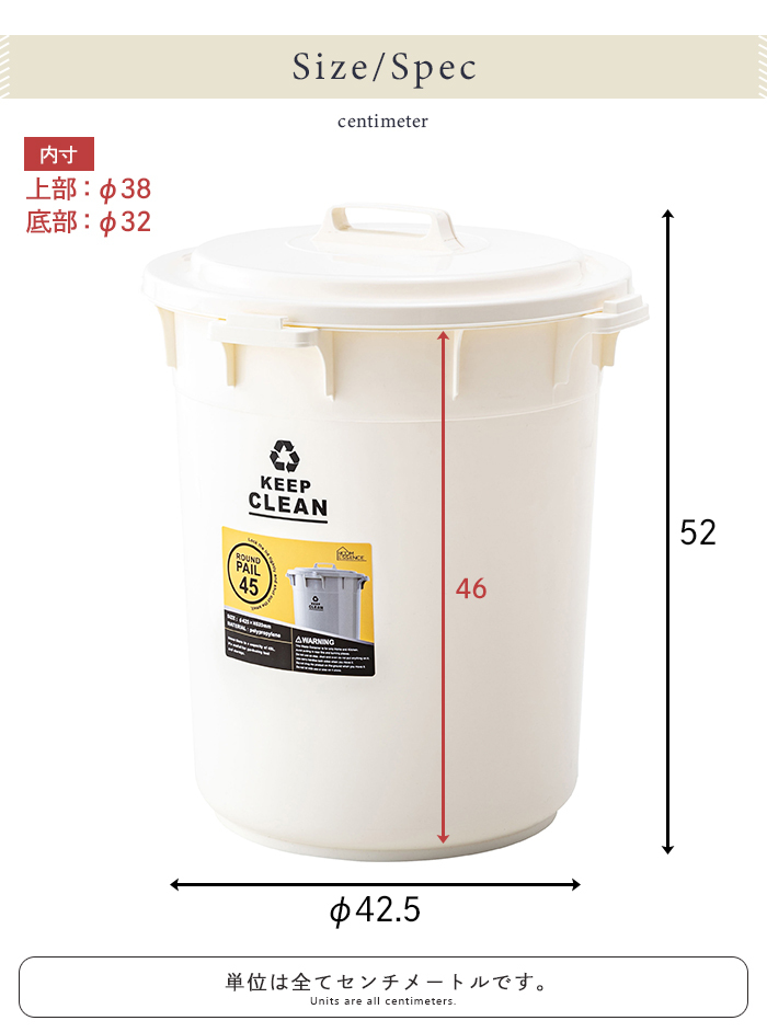 | ラウンドペール 45L 幅42.5 奥行42.5 高さ52cm インテリア インテリア小物 置物 ゴミ箱 |