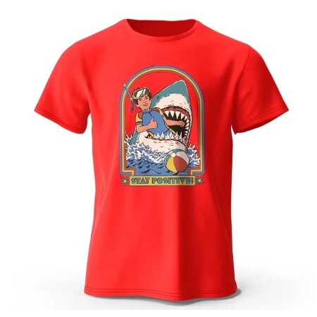 クラシックなヴィンテージ面白いサメTシャツ,肯定的なプリントの服,綿100%,スポーティなトップス サイズ:M 色:レッド