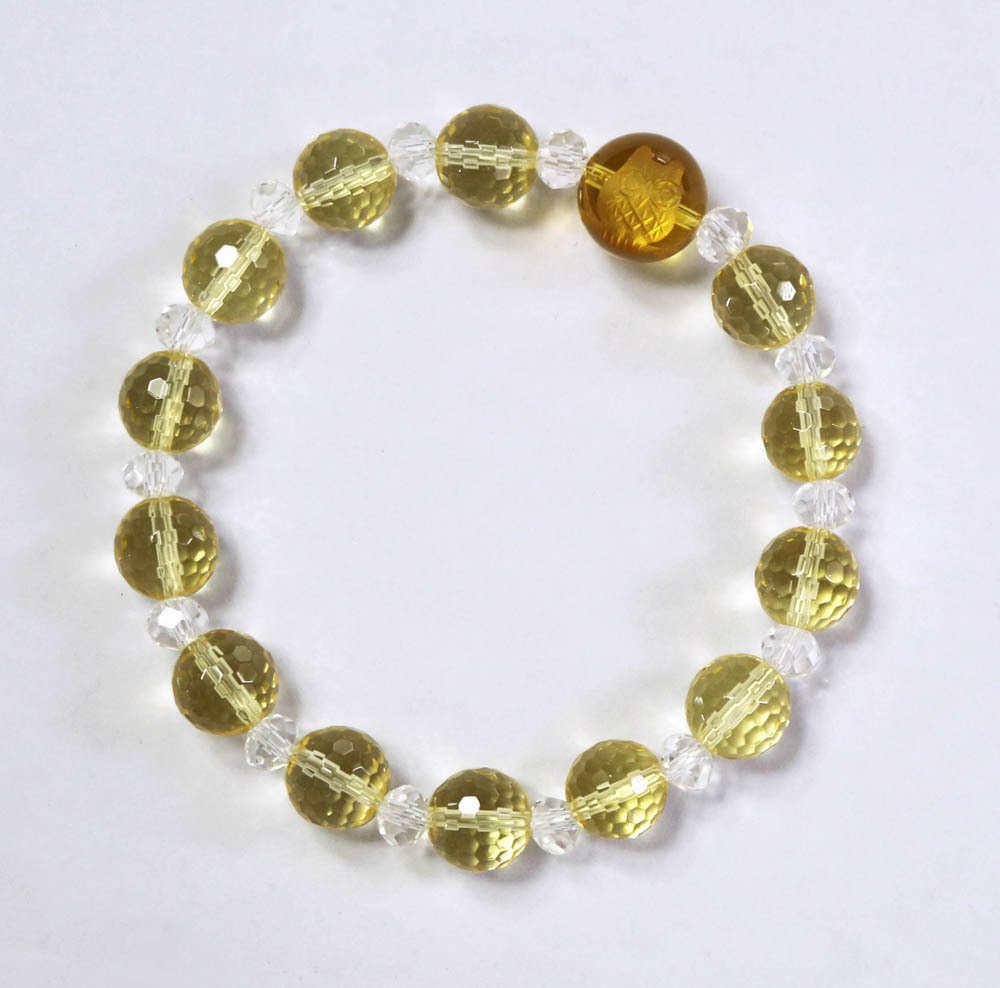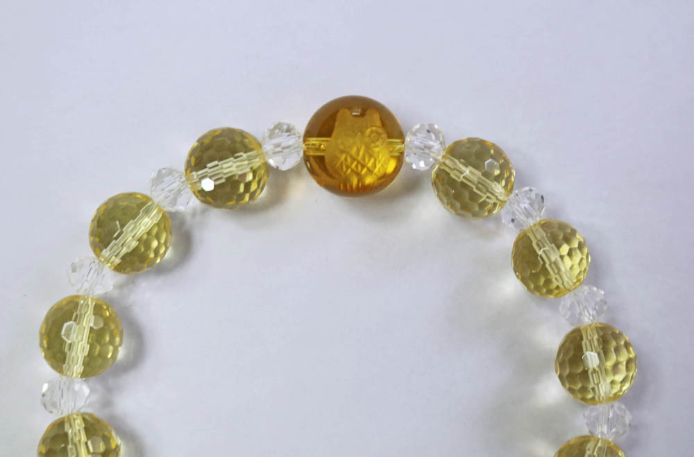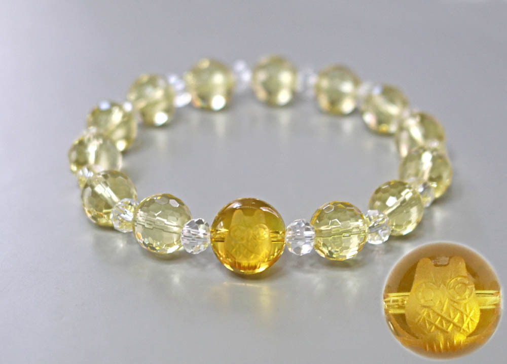 【風水】黄水晶「ふくろう」学業成就・金運上昇祈願のブレスレット 20cm