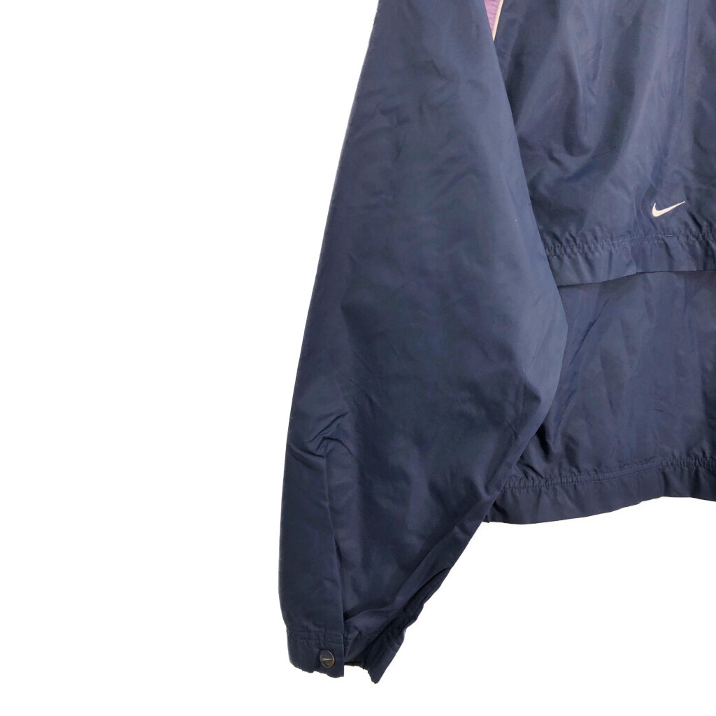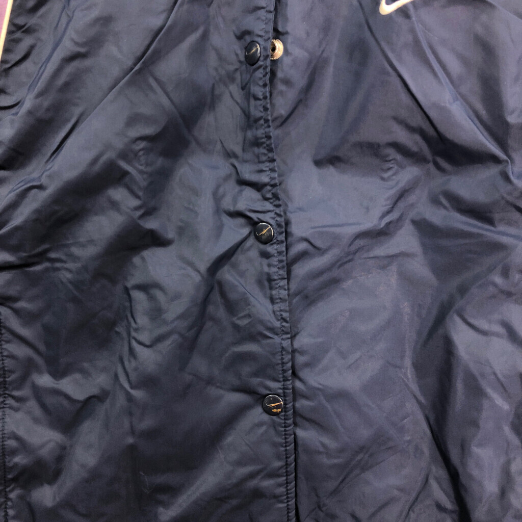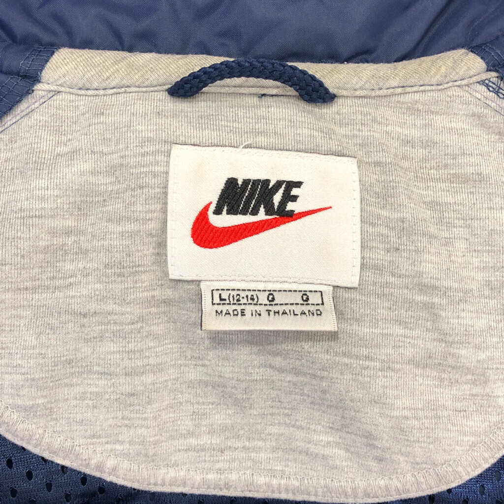 [商品管理番号] S0170 [ブランド] NIKE/ナイキ [サイズ] L [実寸サイズ] 着丈:約60cm 身幅:約64cm 裄丈:約86cm 袖下丈:約53cm [主な素材] 表地 : ナイロン [色] ネイビー [仕様] 90年代 ベンチレーション スポーツ [状態] 汚れ:襟、袖、背中 キズ:袖、袖先、腹部、裾 | |||