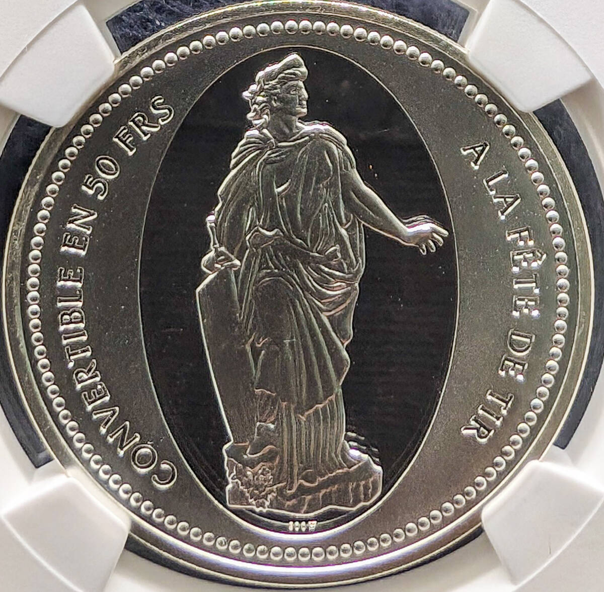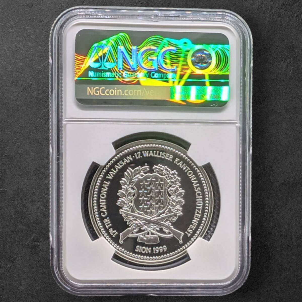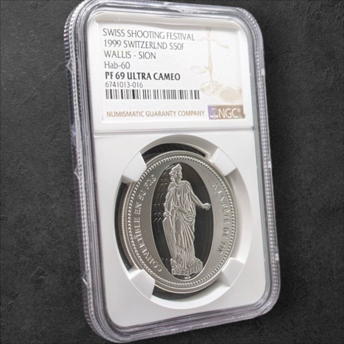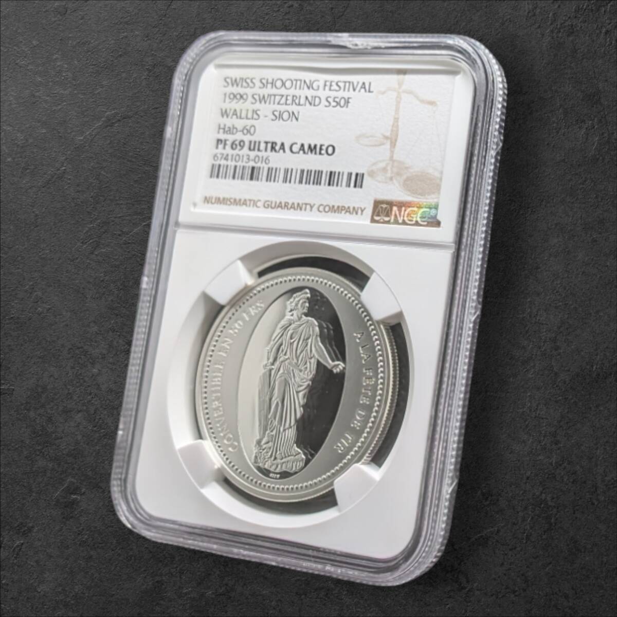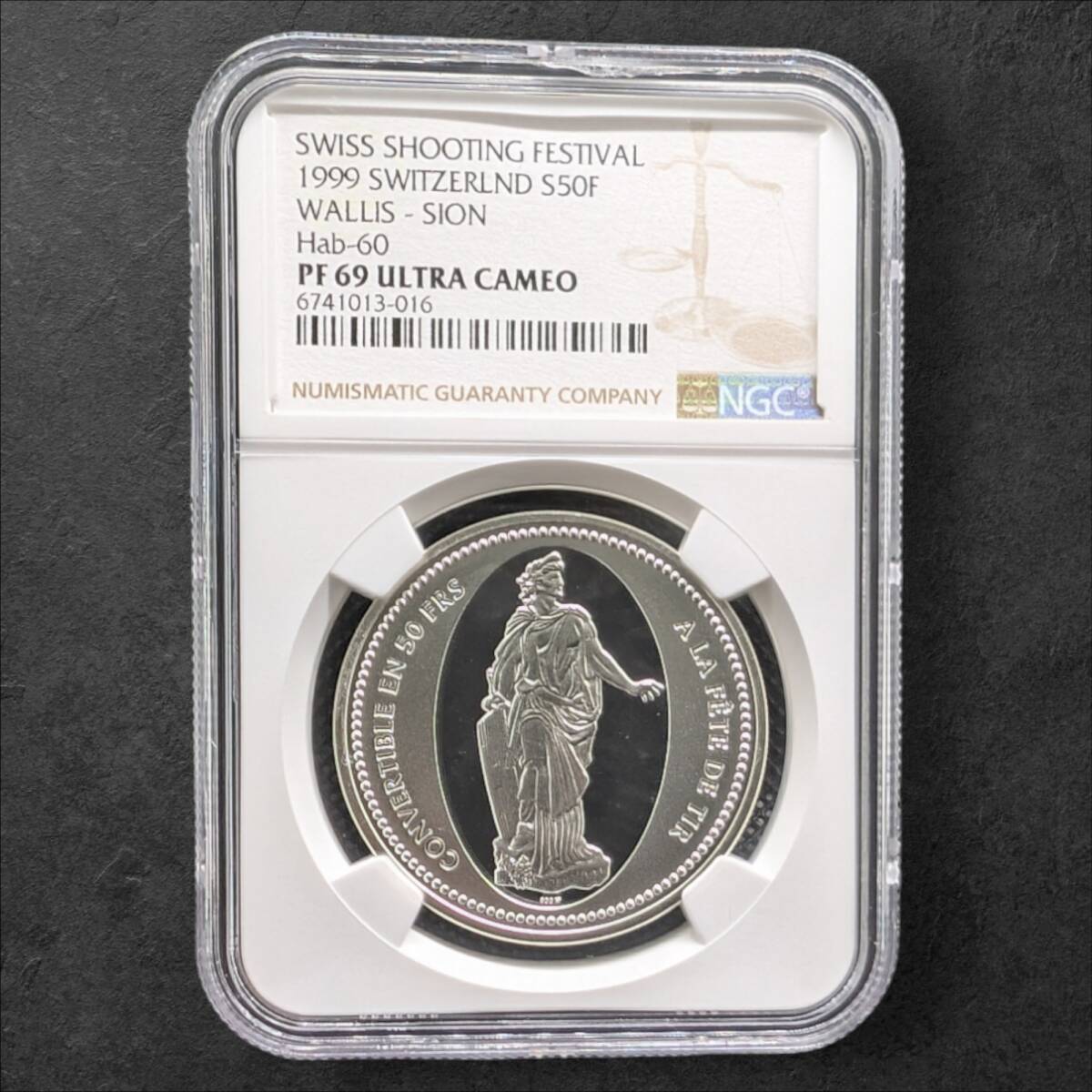 ★準最高鑑定 限定46枚★ 1999年 スイス 射撃祭 NGC PF69 ULTRA CAMEO 50フラン ヘルヴェティア シオン モダンコイン 資産保全