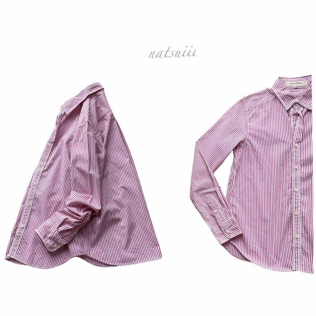 MACPHEE トゥモローランド . コットン ストライプ 長袖 定番 綿 シャツ ピンク 日本製 送料無料