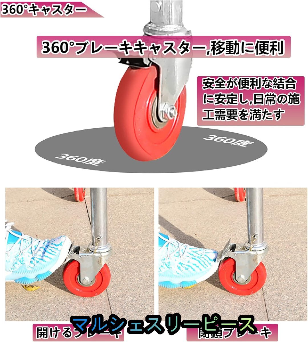 【360°固定可能、キャスターの移働】360°回転可能なキャスターが4つ搭載されており、簡単に移働でき、簡単に固定することができ、移働にも固定作業にも便利です。