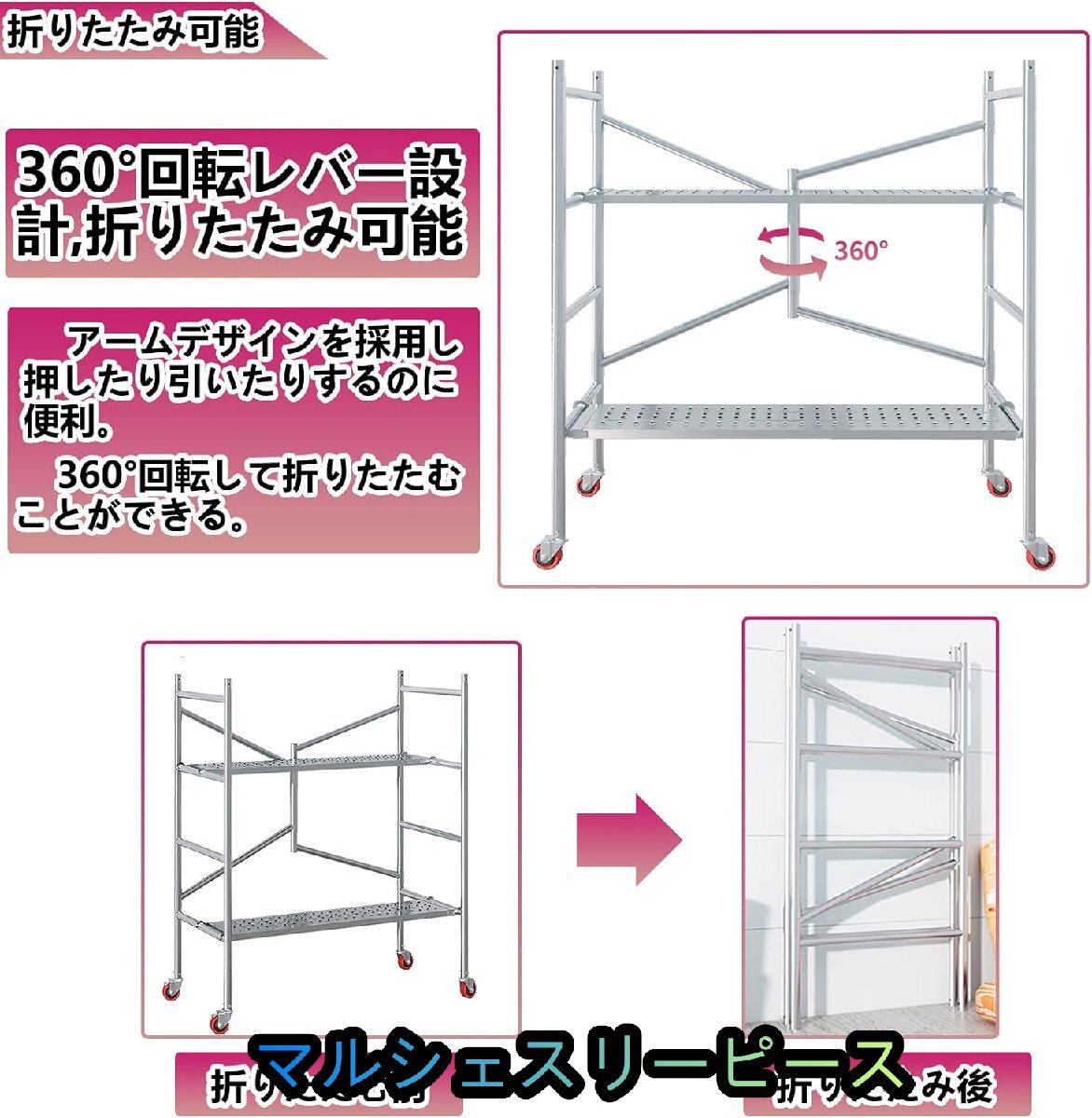 【360° 折りたたみ ことができる/伸縮する設計】この足場はは360° 折りたたみ ことができる設計を使用して、一人でも操作することができます。折りたたむにしても広げるにしても、非常に便利になります。