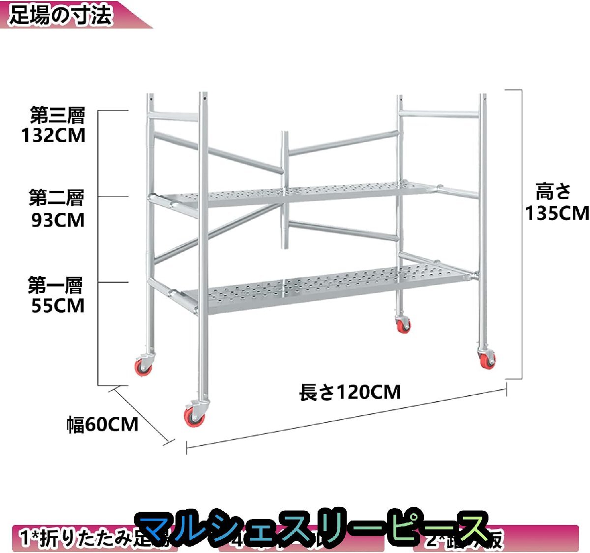 高所作業台 足場台 作業用踏台 作業台折りたたみ 移動足場 ステップ 折りたたみ足場 軽量 持ち運び便利 (135*60*120, 滑り止め)