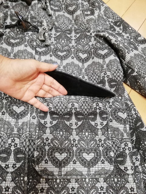 LLサイズ★1回着用★アンドラブ(&Love)のダマスク柄のダッフルコート★黒系★ぽっちゃりさん用