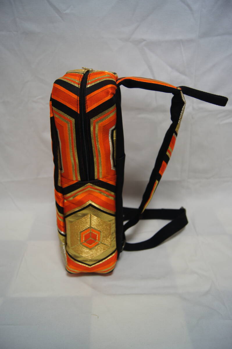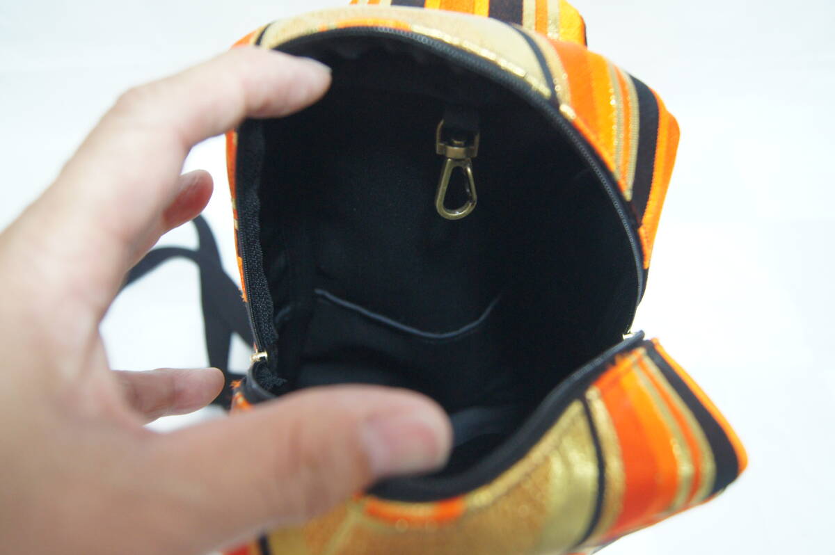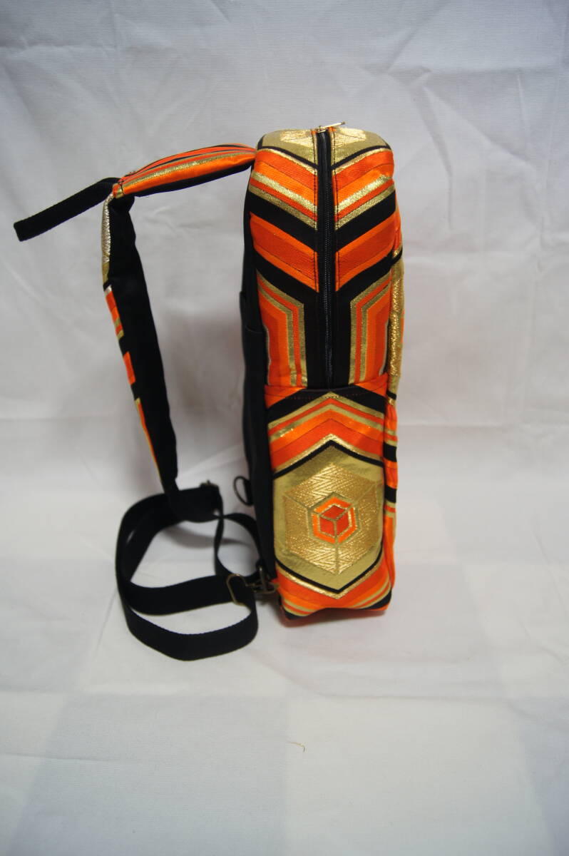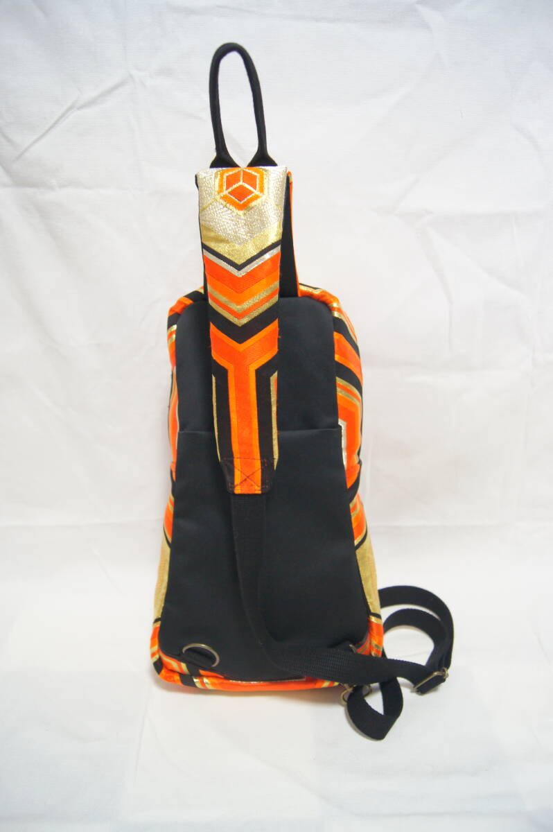 ボディーバッグ 帯地リメイク ハンドメイド 亀甲模様 オレンジ/ブラック/ゴールド系 男女兼用 (#B30) |