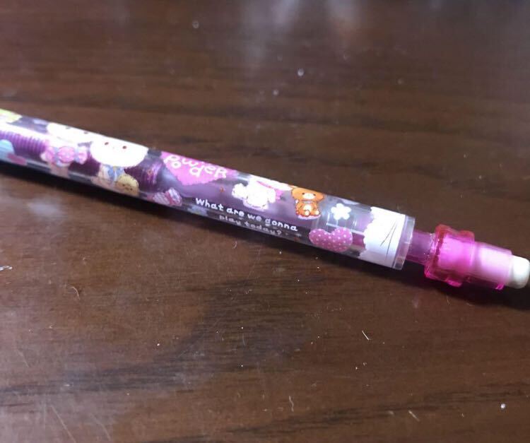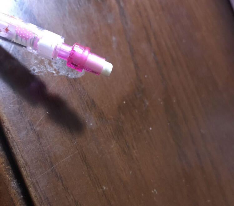消しゴムに少し汚れあり色の剥がれあり振って芯が出るシャーペン