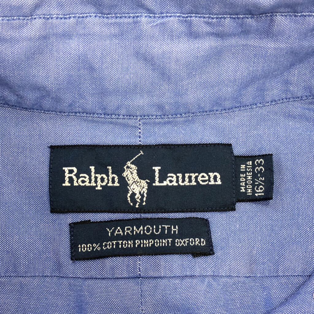 [商品管理番号] S0282 [ブランド] RALPH LAUREN/ラルフローレン [サイズ] 16 1/2 [実寸サイズ] 肩幅:約50cm 着丈:約83cm 身幅:約68cm 袖丈:約58cm [主な素材] 表地 : コットン [色] ブルー [仕様] ボタンダウン YARMOUTH ワンポイントロゴ [状態] 汚れ:襟 キズ:袖先 | |||