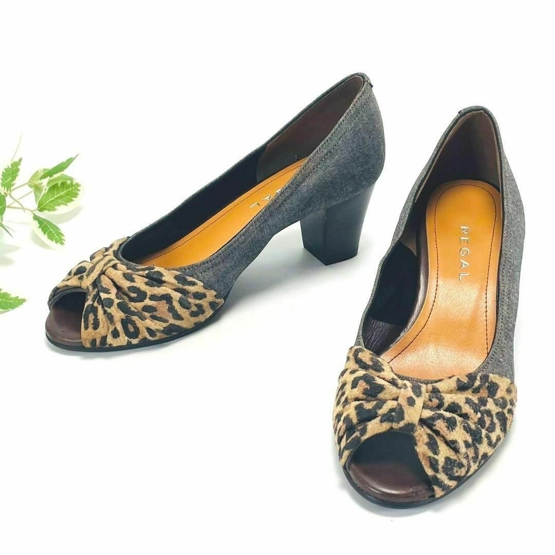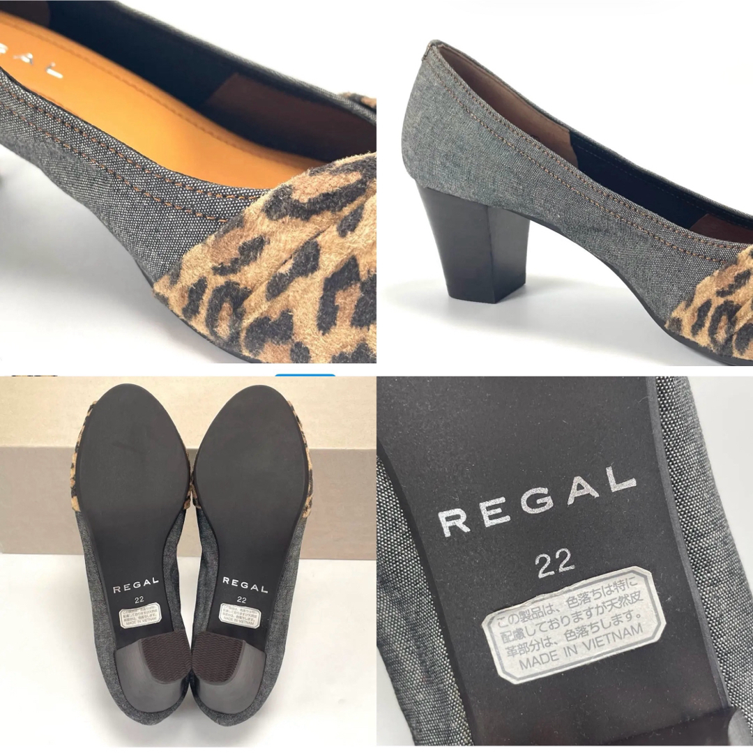 コーディネイトのアクセントになる、レオパードがお洒落なリーガルのパンプスです。