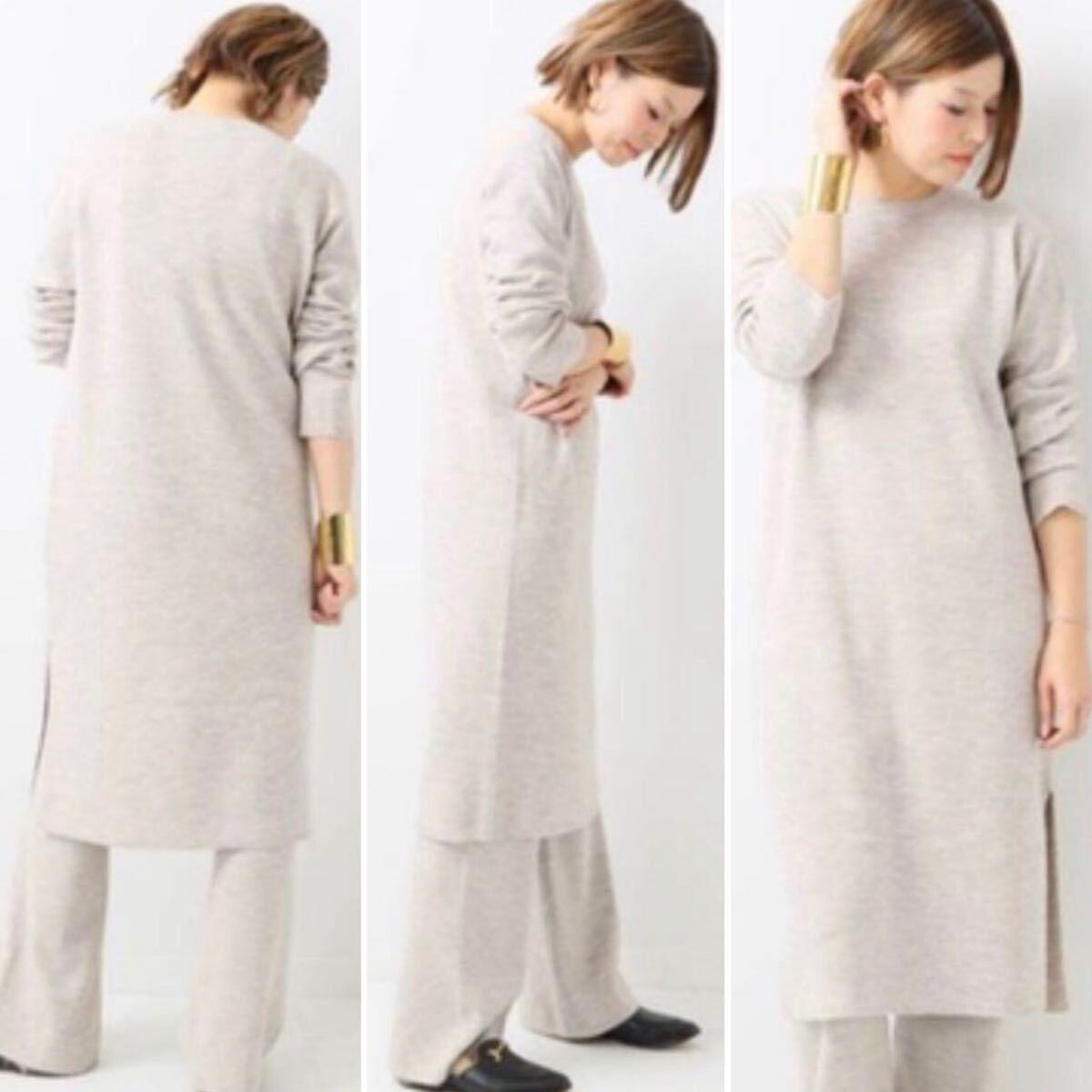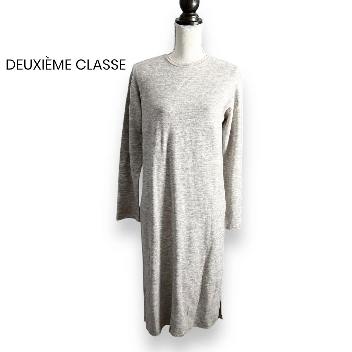 美品 DEUXIEMECLASSE PARIS ドゥーズィエムクラス 長袖 クルーネック ニット ロング ワンピース ウール ライトグレー レディース