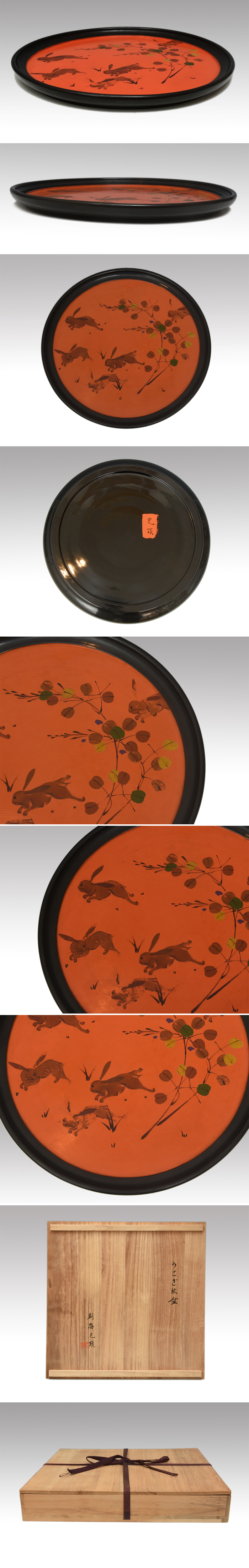 | 東京芸術大学教授 新海光顕 (造)うさぎ絵盆 本漆塗 漆器 茶道具 木工芸 漆工芸 漆芸 天然木 |