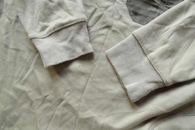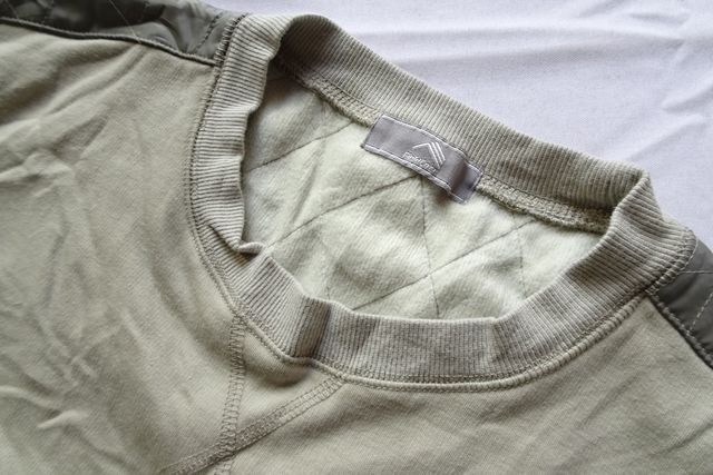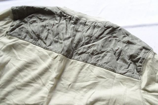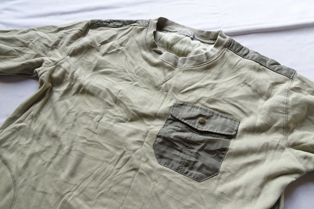 左胸フラップポケット、肩ヨーク部分は、ナイロン系素材切替です。