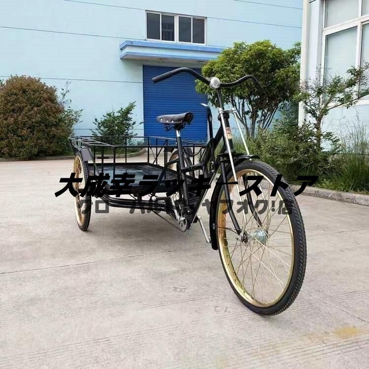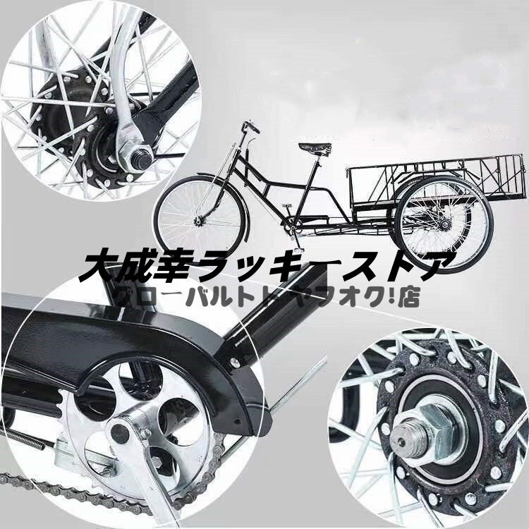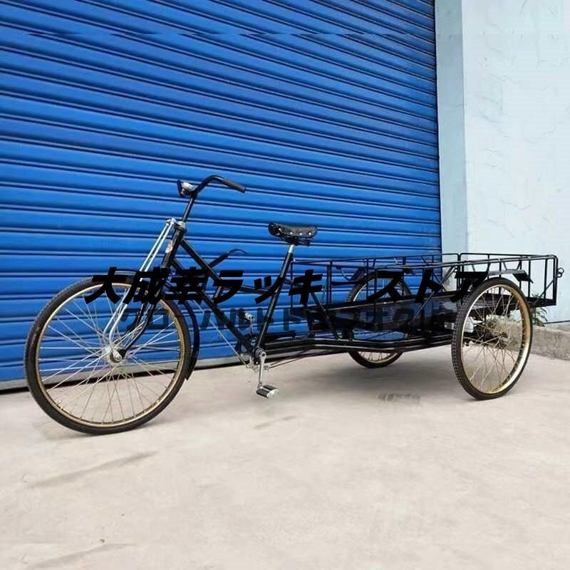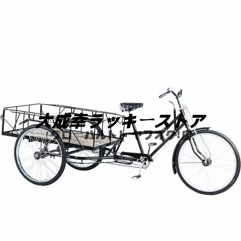 大好評 三輪自転車 大人用貨物三輪車大容量 貨物バスケット後カゴ付 ブラック 26インチ 載荷重200kg ダブルブレーキ 三輪車 S241