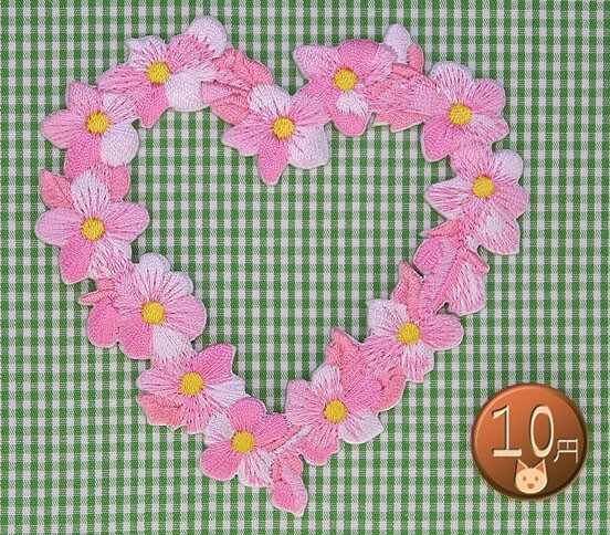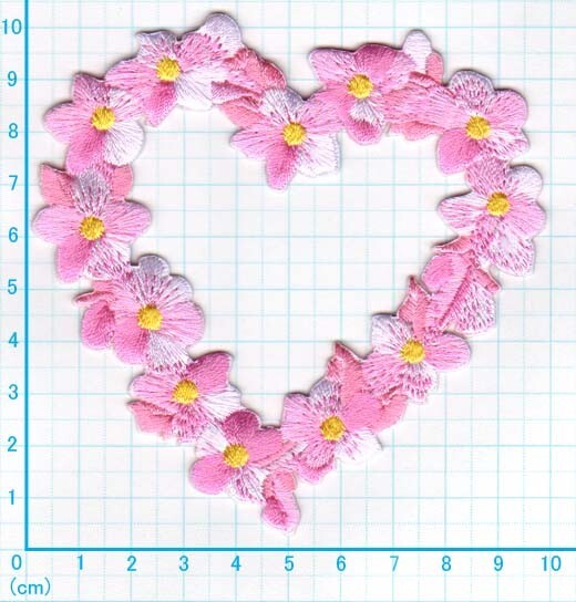 アイロンワッペン/刺繍/アップリケ/フラワーハートリース ピンク/花/デコレーション