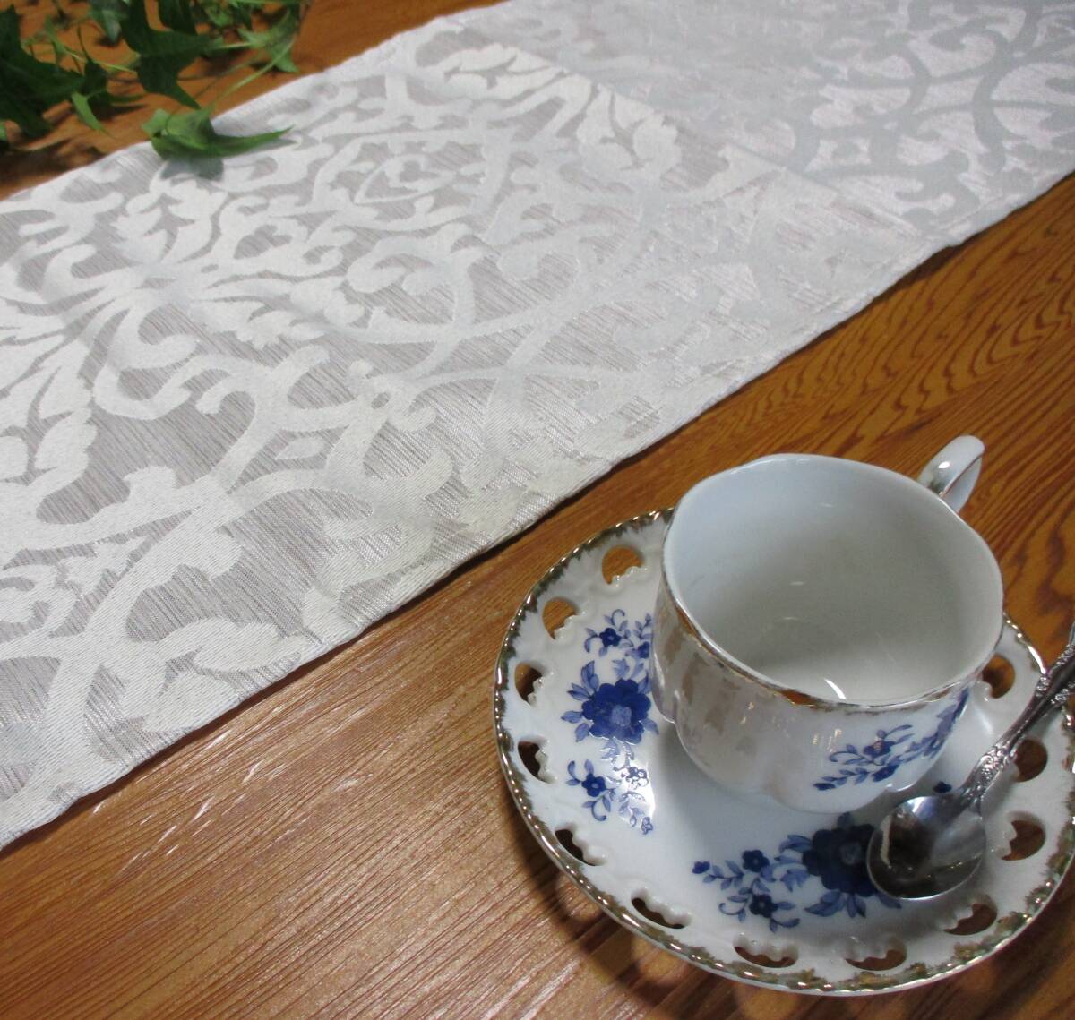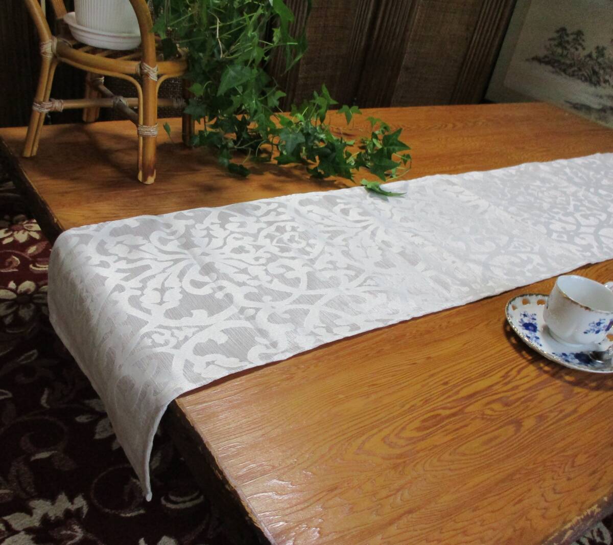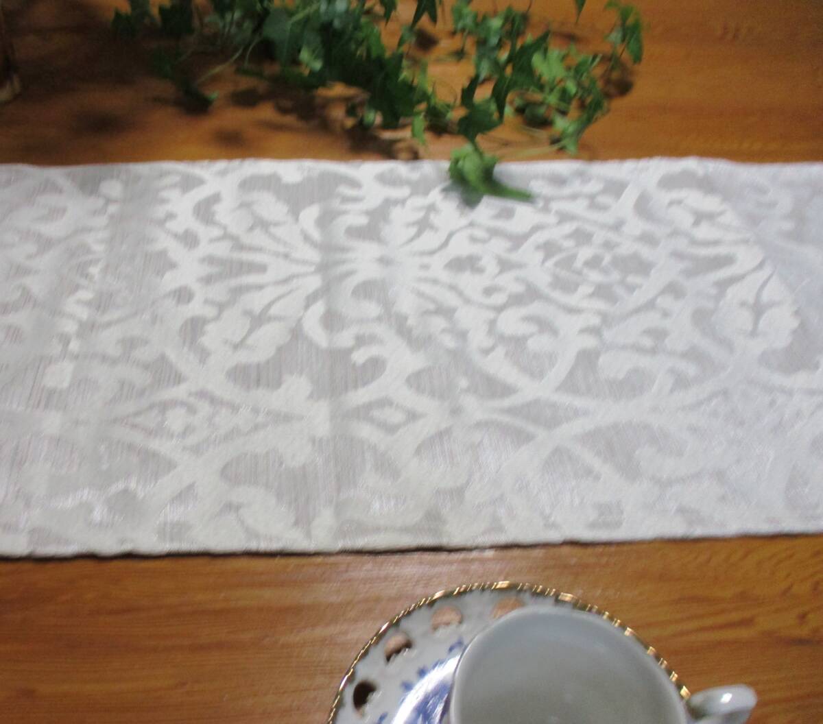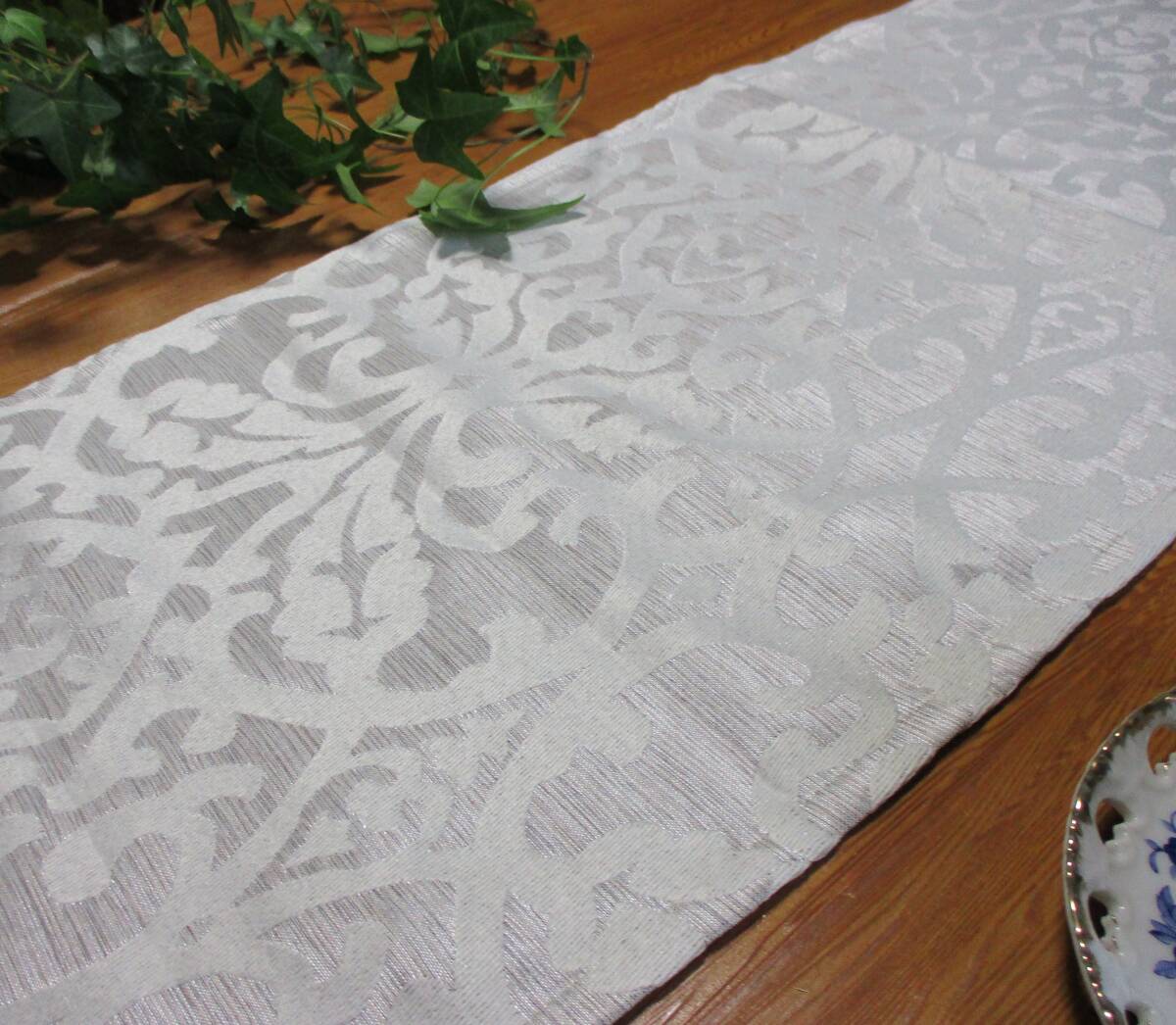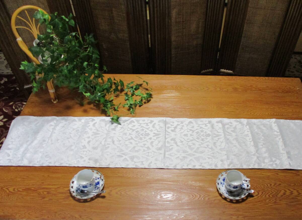 ★ テーブルランナー アラベスク 160×30cm シルバー ホワイト 限定 オリジナル 韓流 デザイン ハンドメイド 新品 未使用 写真詳細参照 10A(1~4)