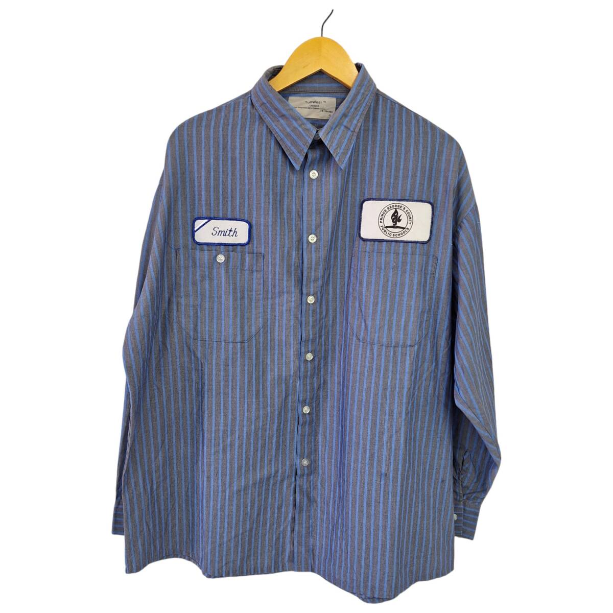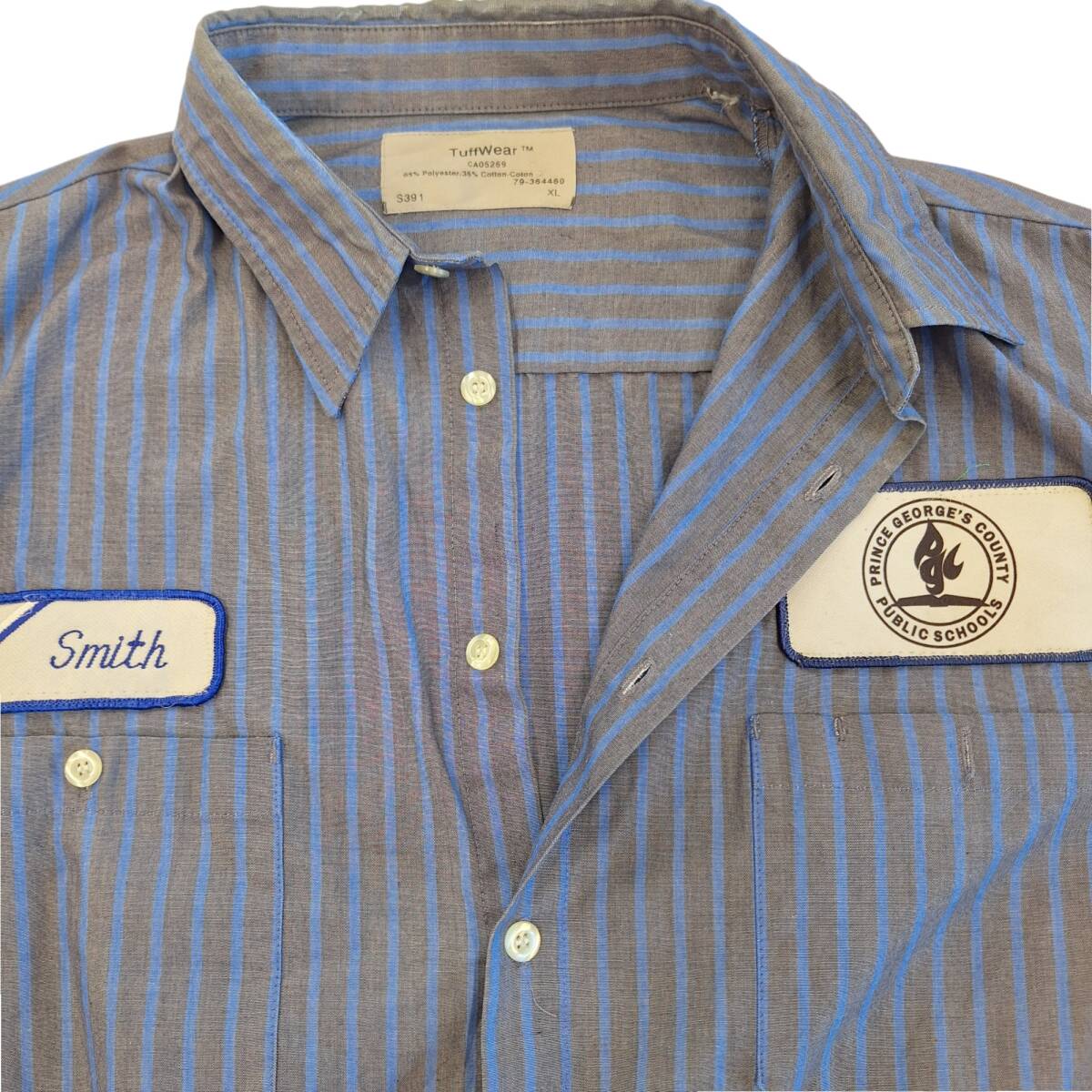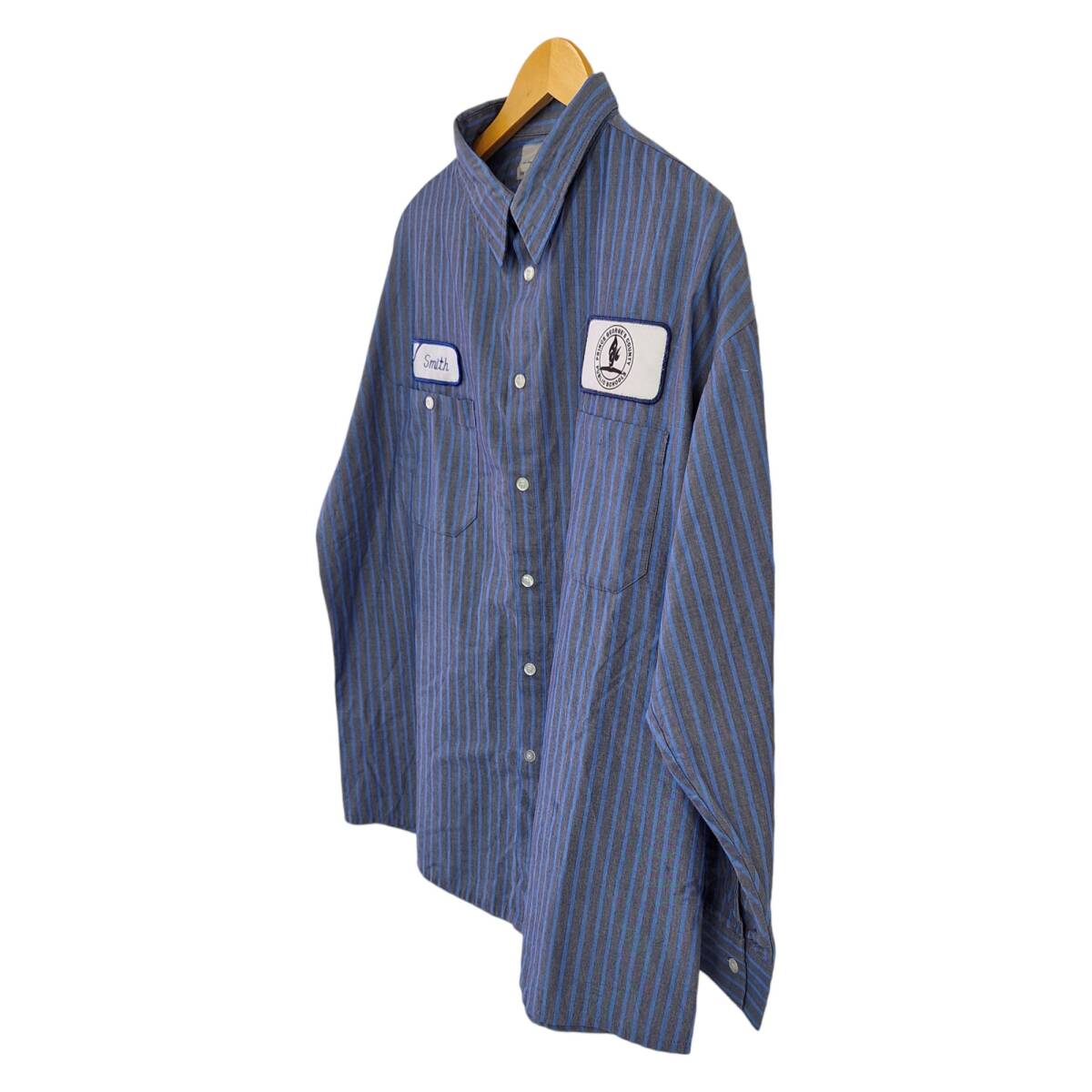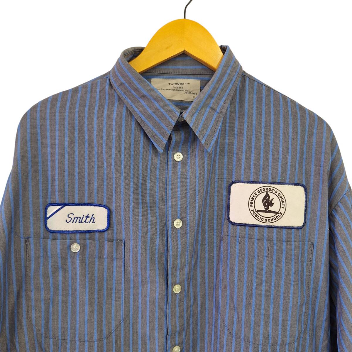 Tuffwear タフウェアー 長袖ワークシャツ グレー×縦ストライプ柄(ブルー) XLサイズ
