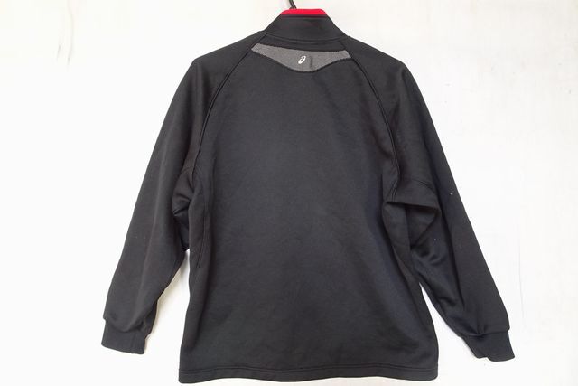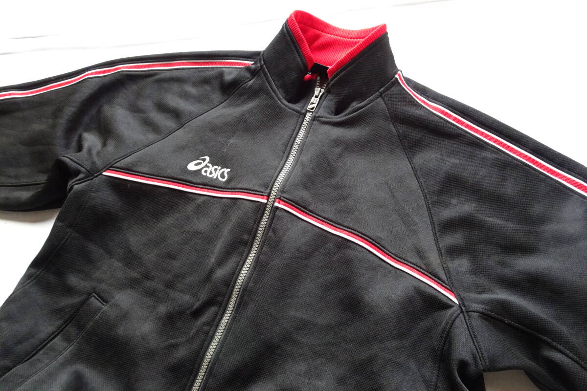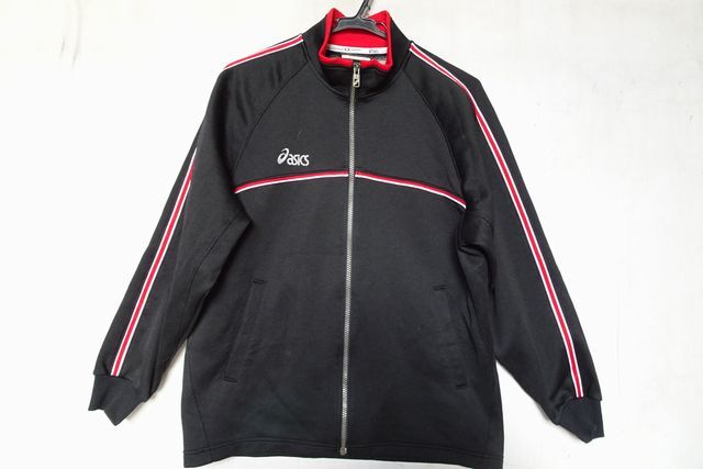 asics/アシックス/XGT378/長袖トラックジャケット/ジャージ素材/前ジップアップ/赤白ライン/スポーツ/黒/ブラック/Sサイズ(10/31R)