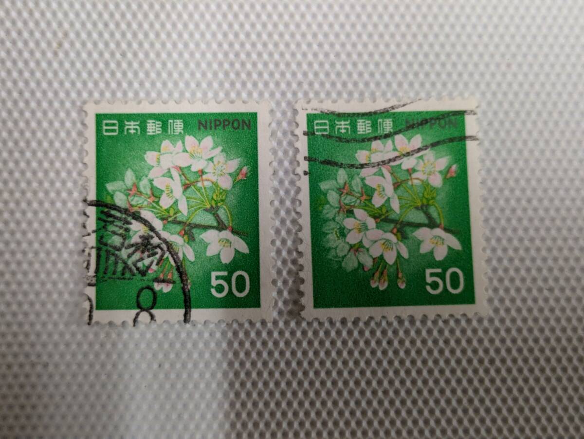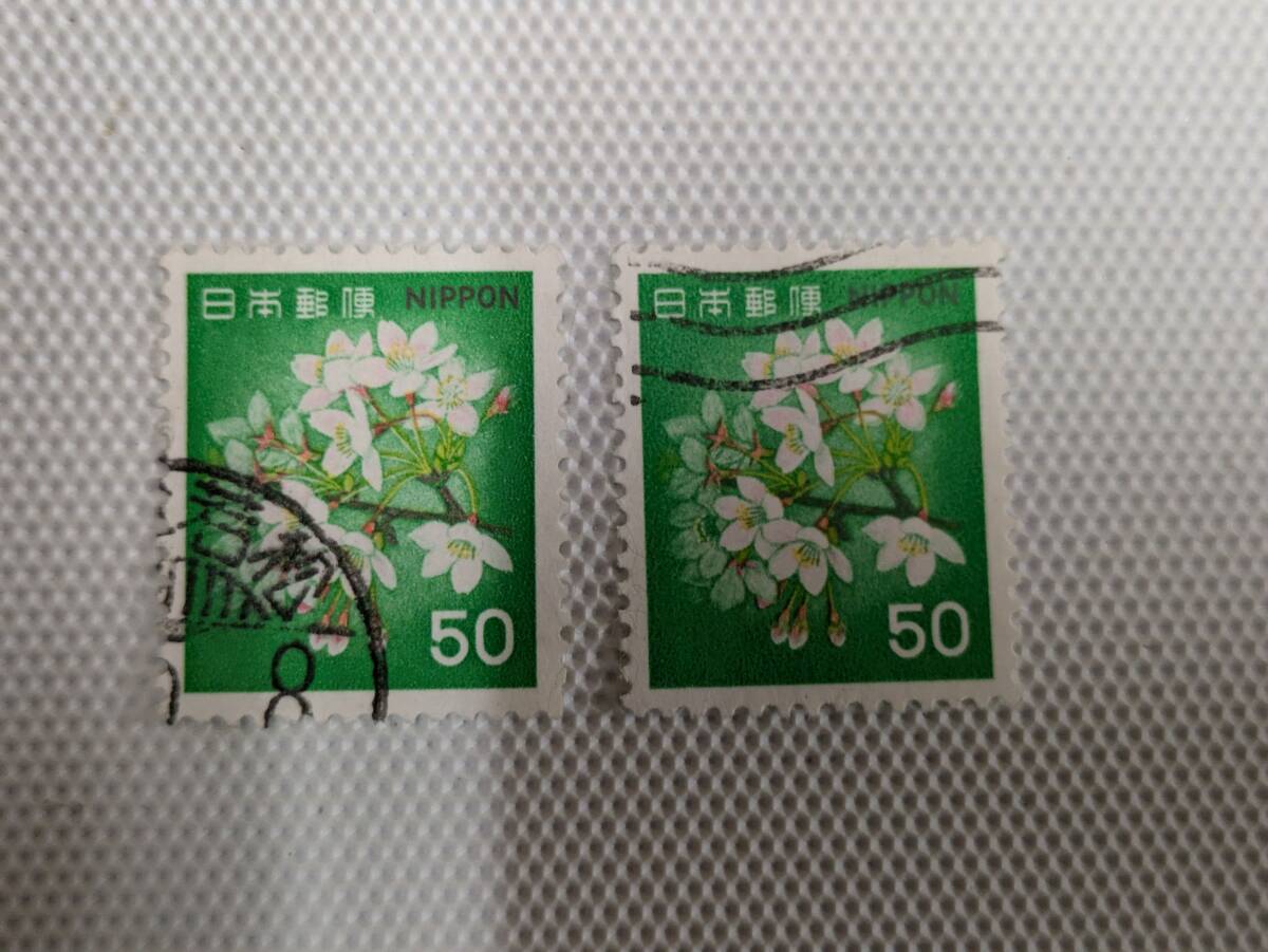 普通切手 1966-1989 新動植物国宝図案切手 Ⅴ.1980年シリーズ (封書60円時期) ソメイヨシノ 50円切手 単片 使用済 2枚