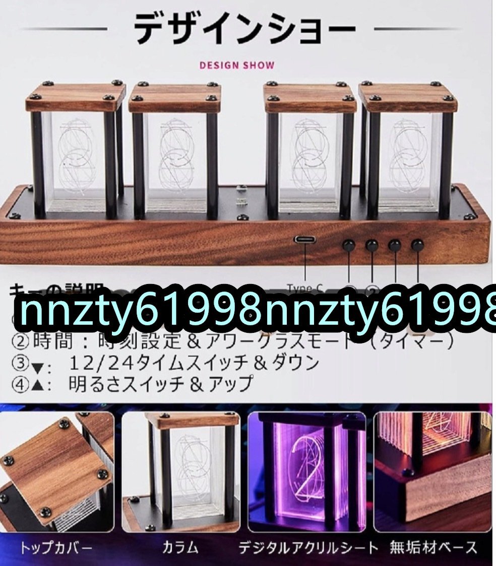 ニキシー管 時計 デジタル時計 木製 置き時計 おしゃれ インテリア ネオン管 光る時計 組み立て不要 真空管 目覚まし時計 チューブクロック