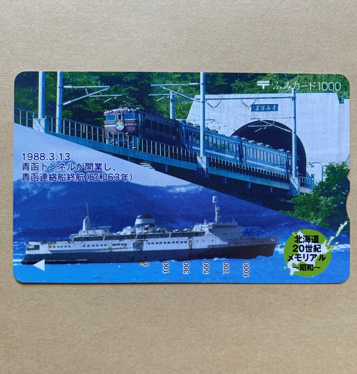 【使用済】 鉄道ふみカード 北海道20世紀メモリアル 1988.3.13 青函トンネルが開業し、青函連絡船就航(昭和63年)