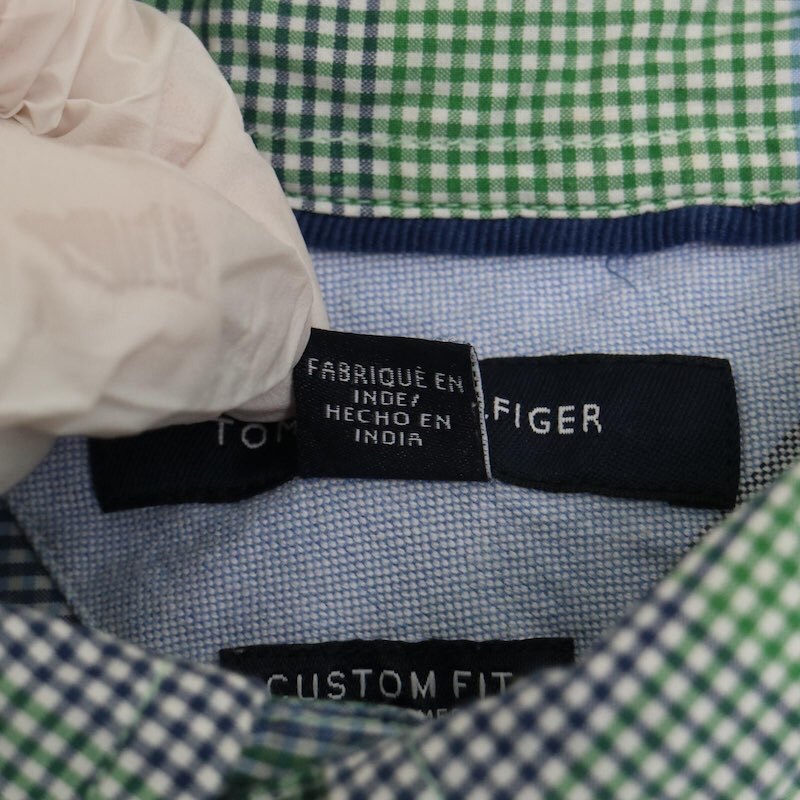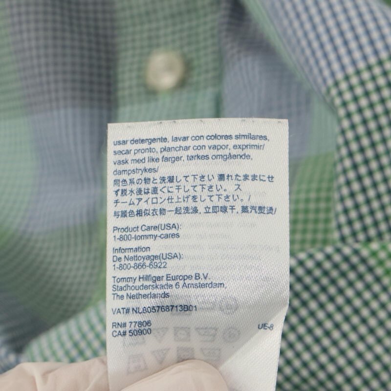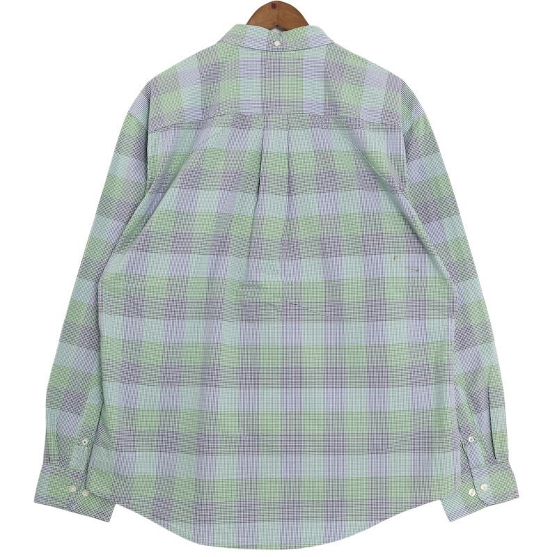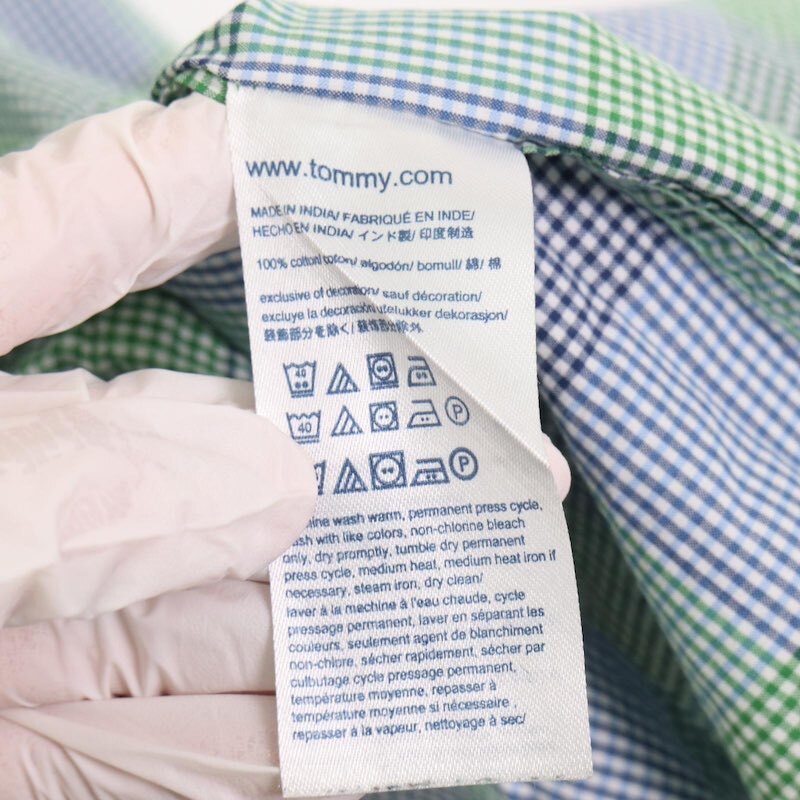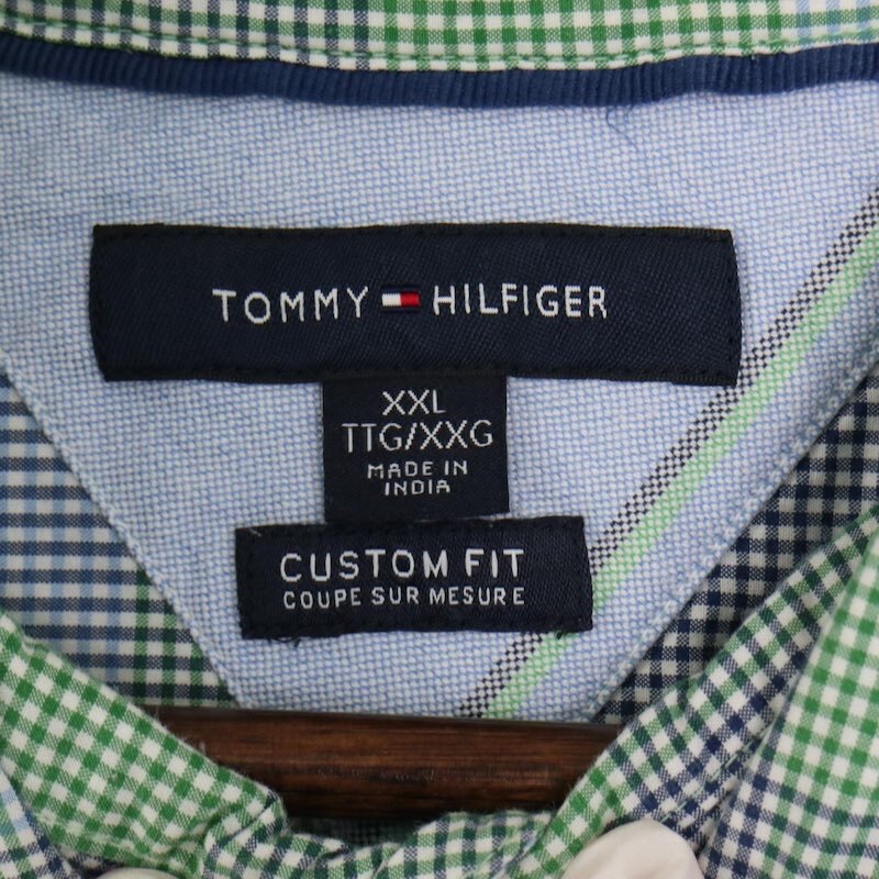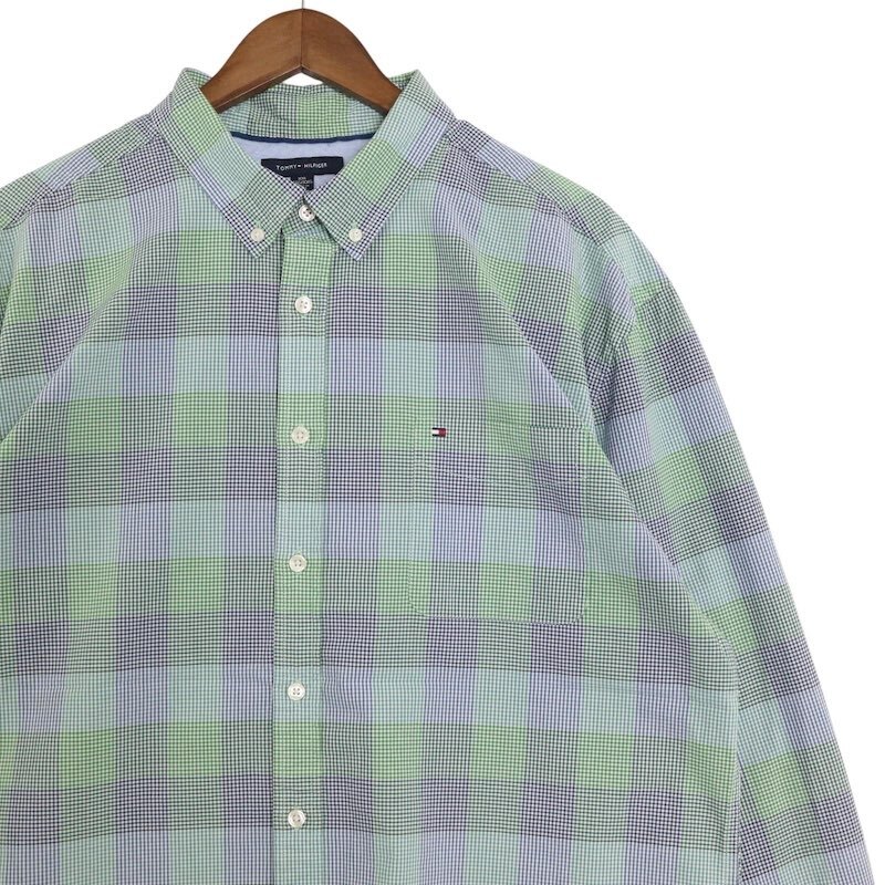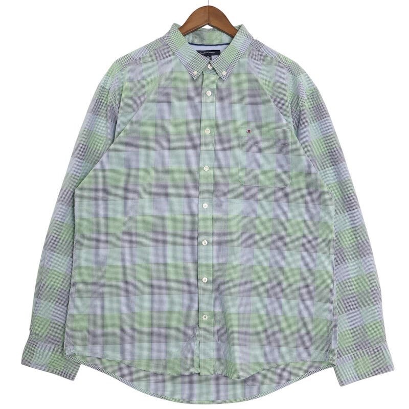 トミーヒルフィガー 長袖ボタンダウンシャツ 古着 メンズUS-2XLサイズ グリーン×ブルー系 sc-0496n