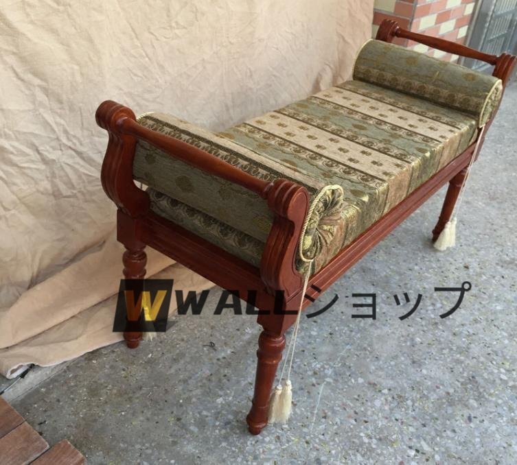 美品登場 限定モデル★イギリスアンティーク ロング オットマン ソリッドウッド製ベッドスツール ソファー ビンテージ 枕付