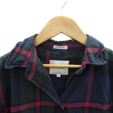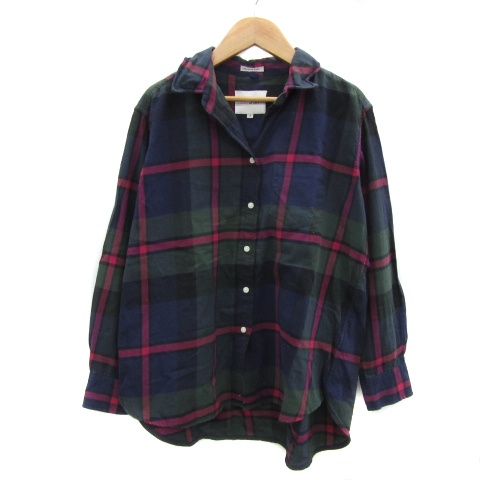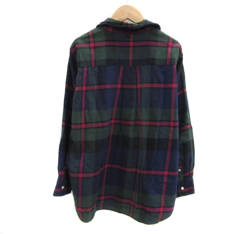 ニコアンド Niko and.. カジュアルシャツ 長袖 スキッパーカラー チェック柄 2 マルチカラー 紺 ネイビー /YS2 レディース