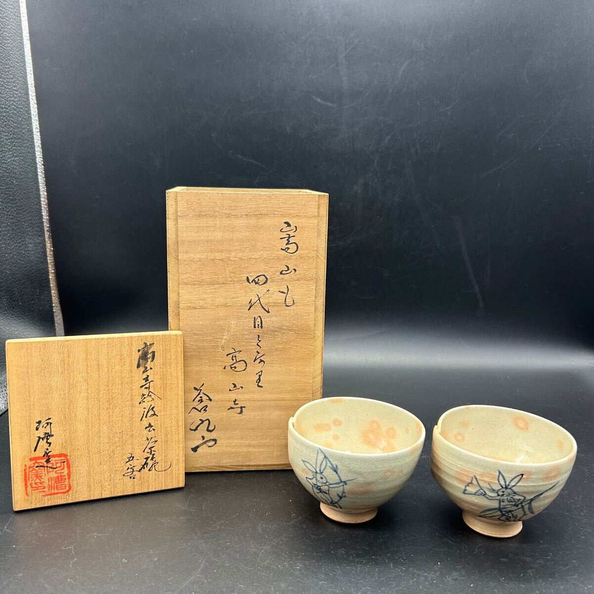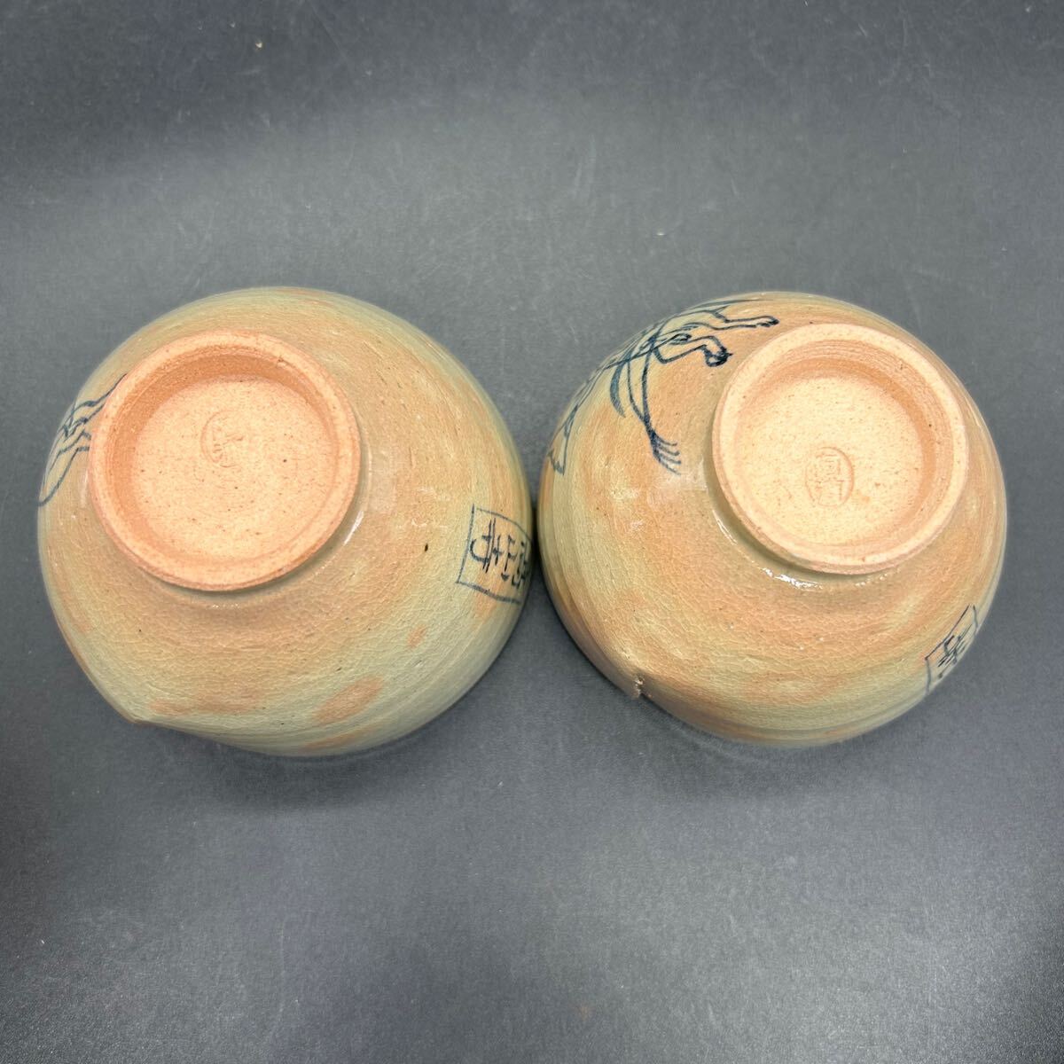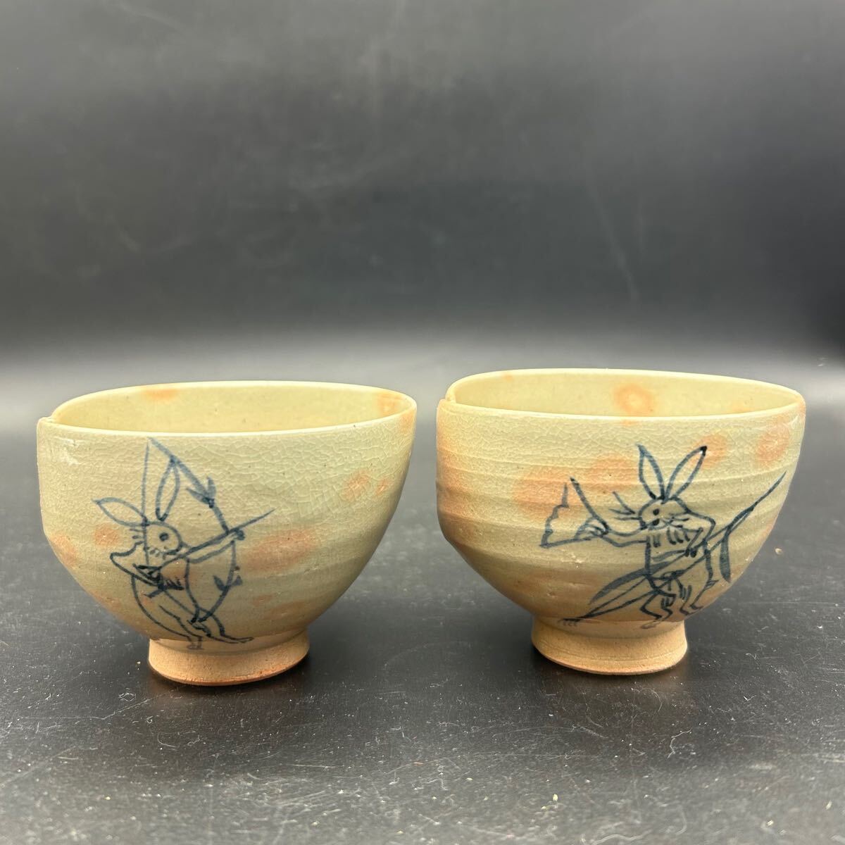 萩焼 阿漕窯 高山寺 鳥獣戯画 うさぎ 湯呑み 茶碗 2客 ス20