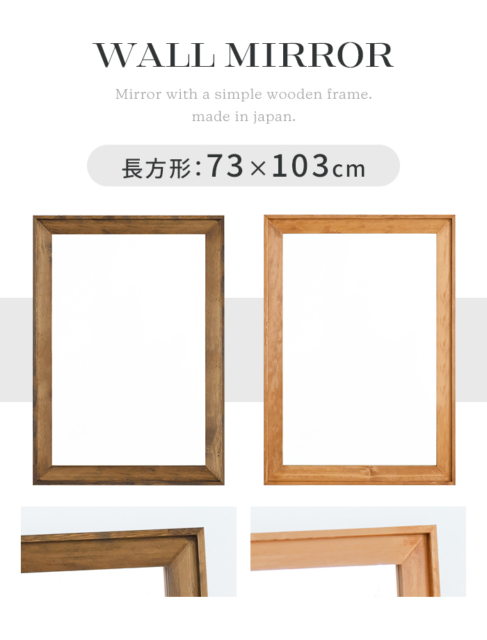 | ウォールミラー 長方形 幅73 高さ101 鏡 ミラー 姿見 飛散防止 日本製 木製 フレーム 木目調 ワンルーム 玄関 洗面所 壁掛けミラー 壁掛け鏡 かがみ 壁掛け 73×101cm 飛散防止加工 金具 立て掛け 省スペース ウッドフレーム 木枠 角型 インテリア 額縁風 高級感 北欧風 ナチュラル ブラウン |