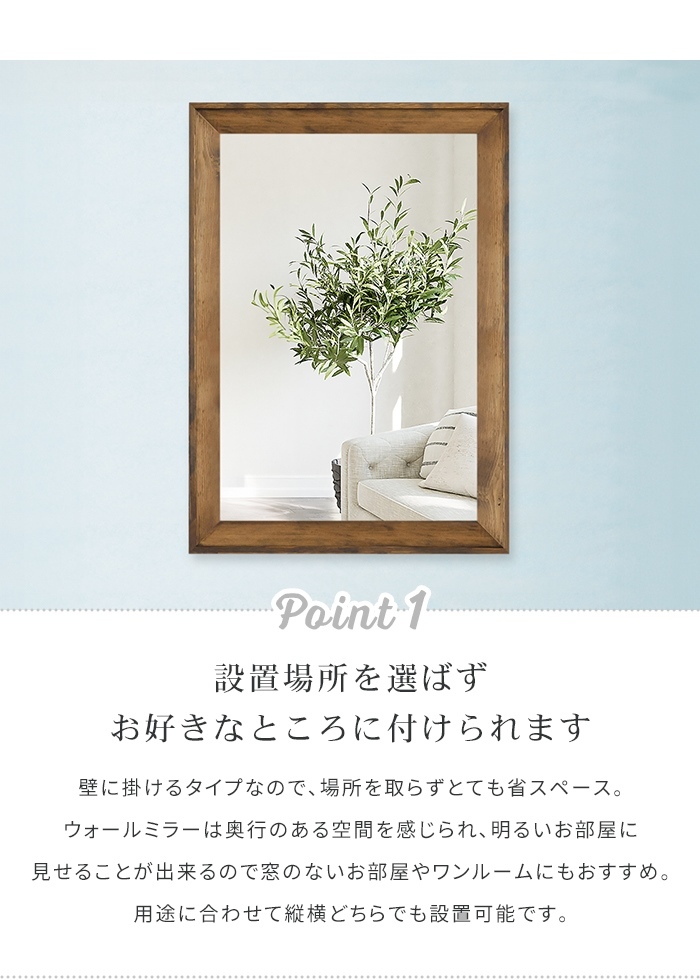 | ・天然木 ・ミラー厚3mm(飛散防止効果あり) ・日本製 |