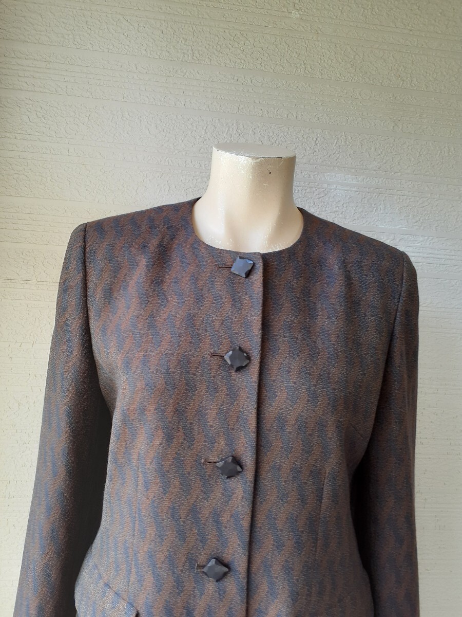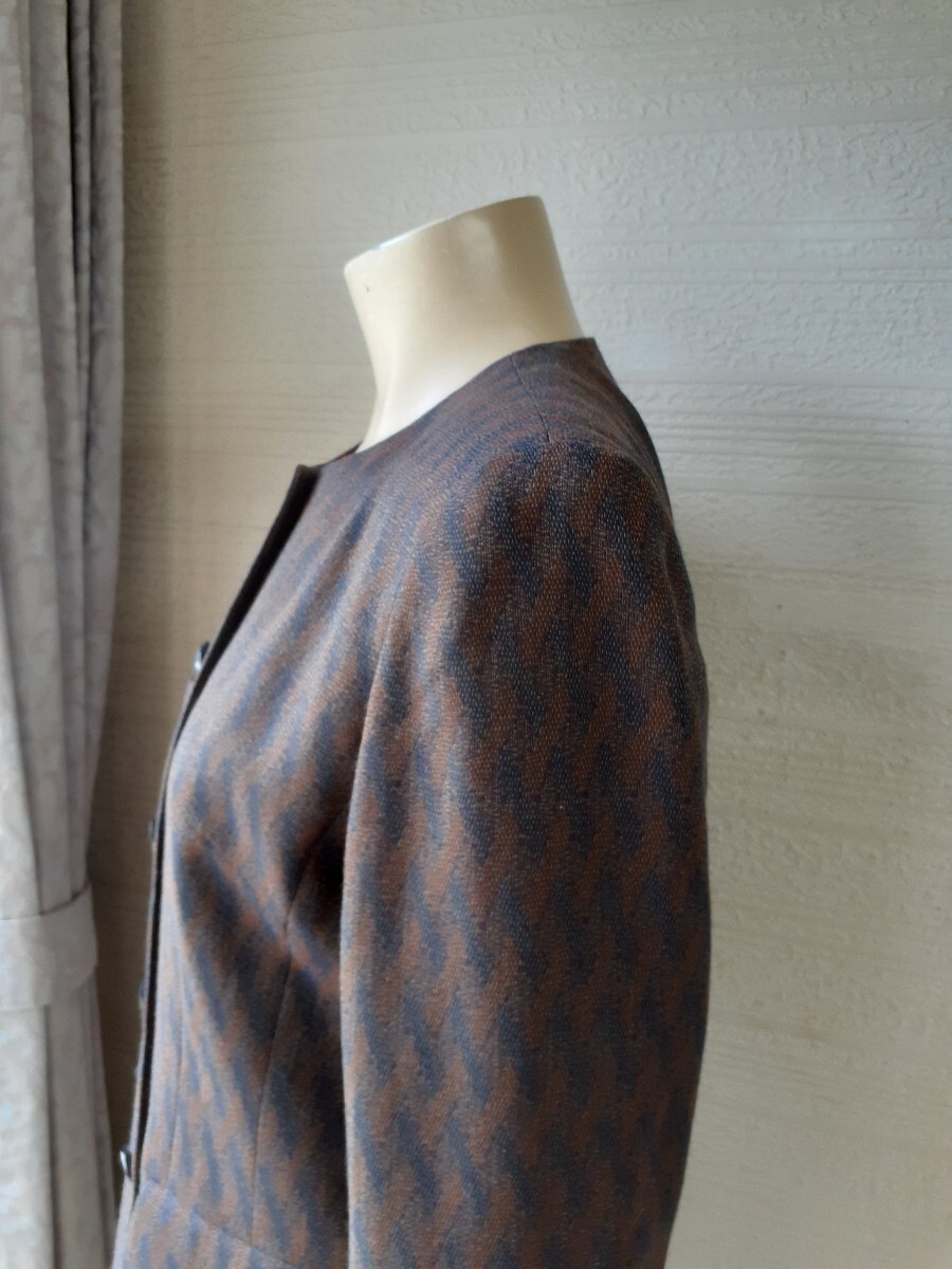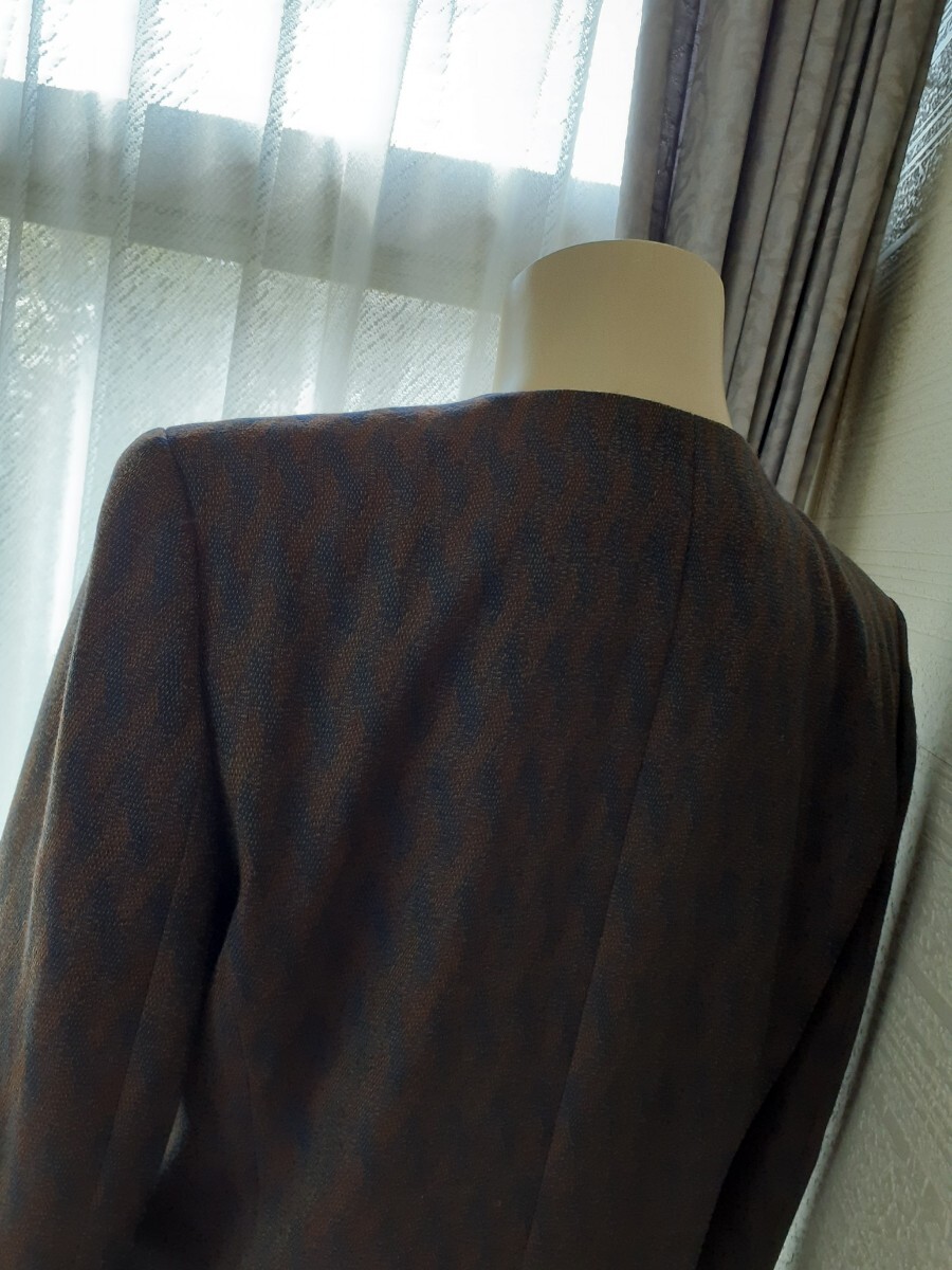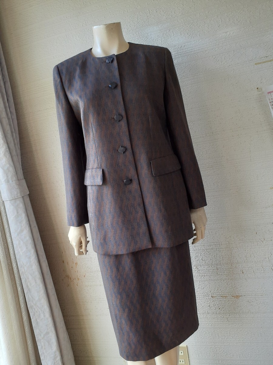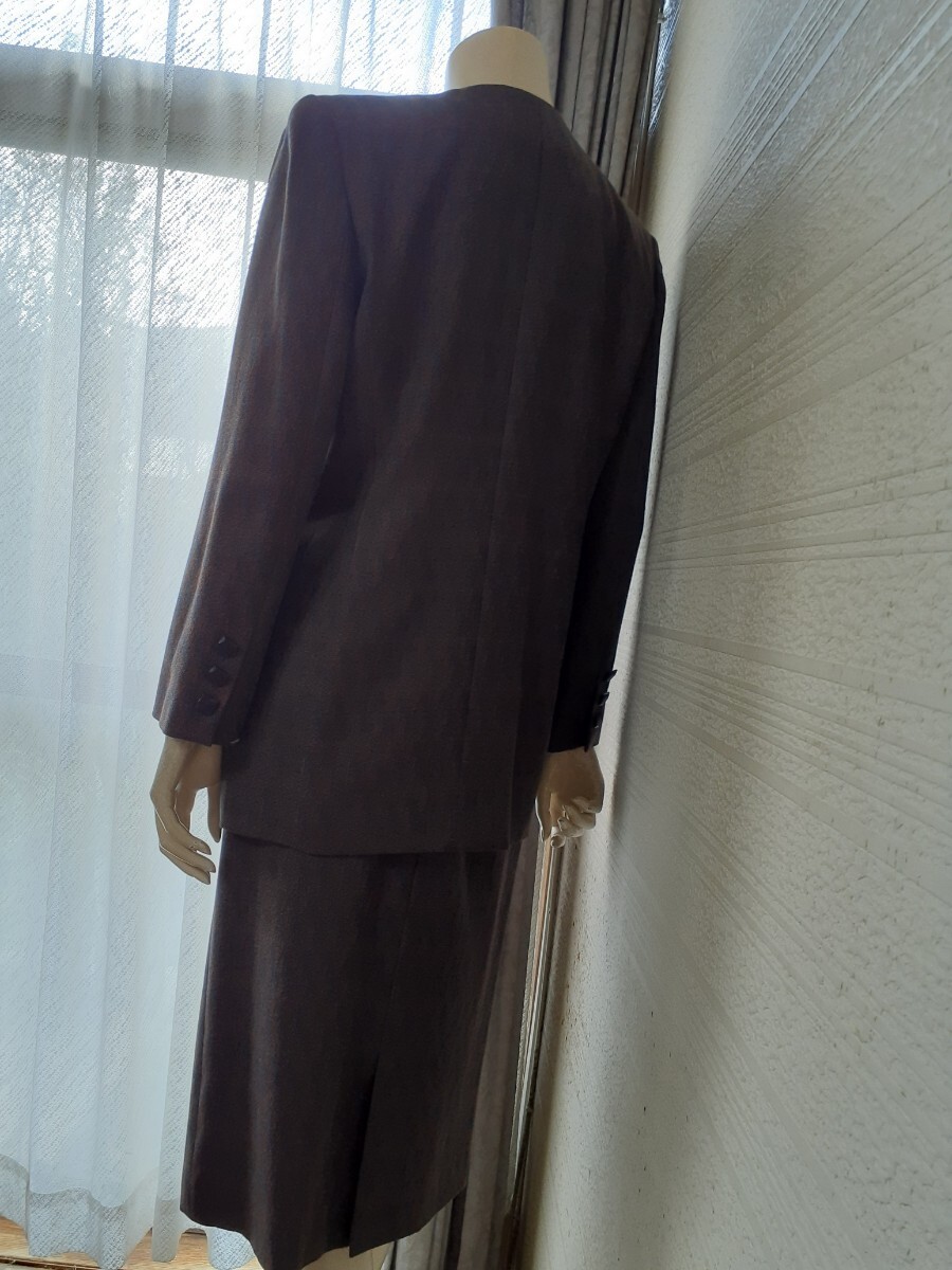 ※実寸: 肩幅 40cm 身幅 50cm 袖丈 57cm ウエスト 45cm ヒップ 50cm 着丈 73cm ポケット 14cm *スカート ウエスト 33cm ヒップ 48cm 着丈 67cm 脇のファスナー 18cm 後ろ裾のスリット 18cm