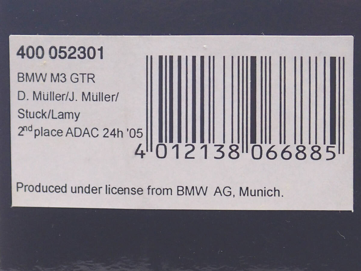 | ■商品説明 品番:400 052301 MINICHAMPS 1/43 400 052301 BMW M3 GTR D.Muller/J.Muller/Stuck/Lamy 2nd place ADAC 24h '05 |