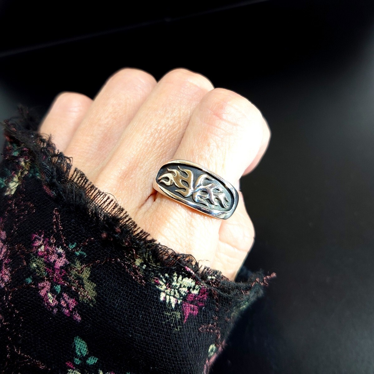 丁寧なカットワークが光り輝き銀と燻しのコントラストがとても綺麗なデザイン!