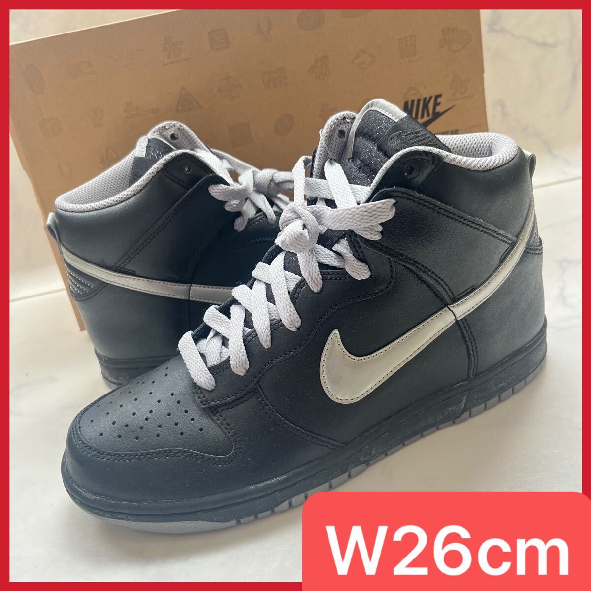 ★送料無料★【新品 デッドストック】W26CM ナイキ ダンク ハイ ブラック メタリックシルバー Nike WMNS Dunk High Icons Black 黒 銀
