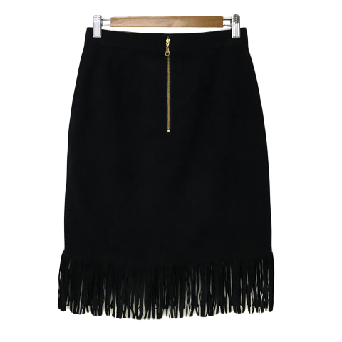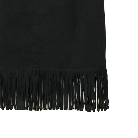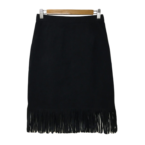 ピンキー&ダイアン ピンダイ スカート タイト ひざ丈 ヴィーガンレザー スエード調 フリンジ 無地 36 黒 ブラック レディース